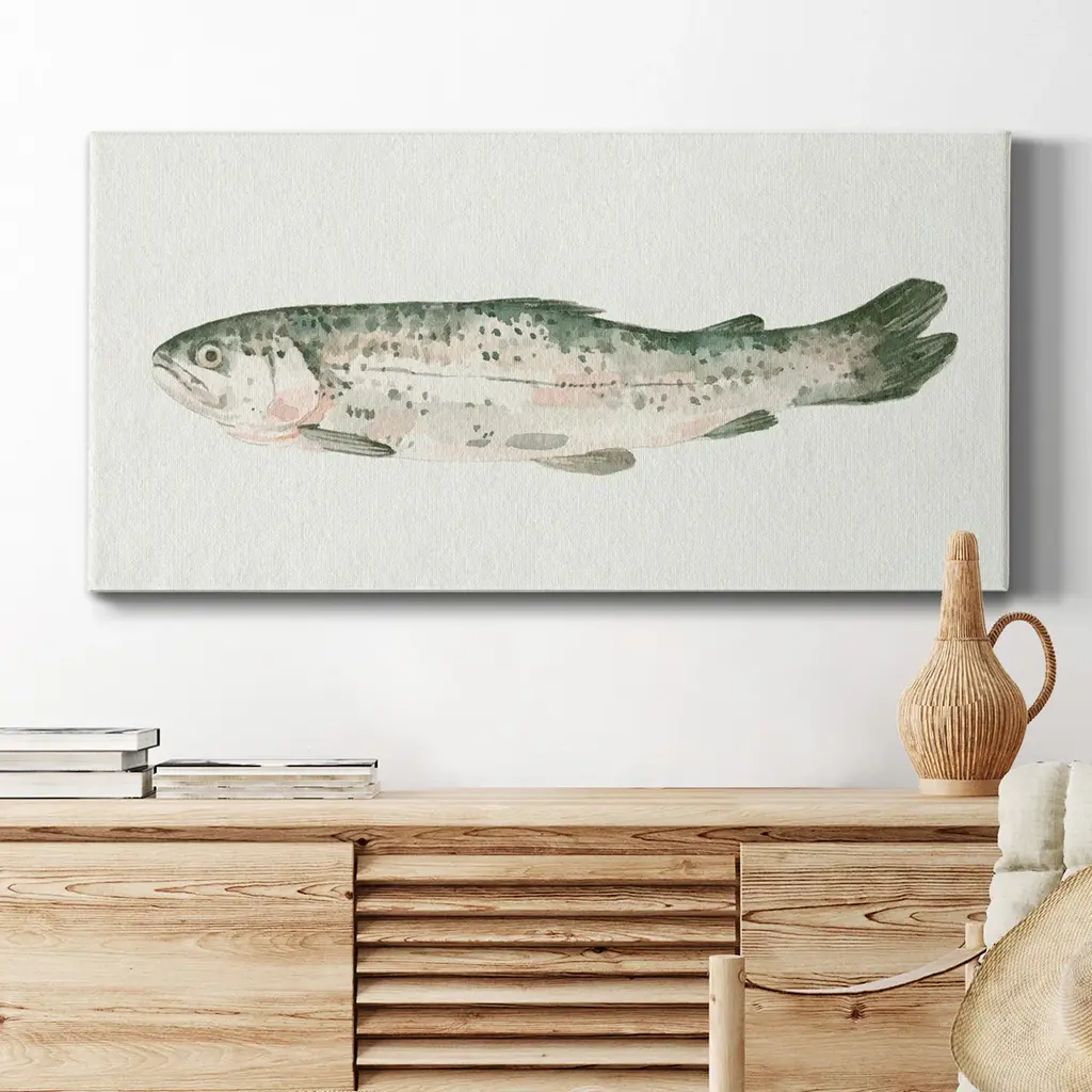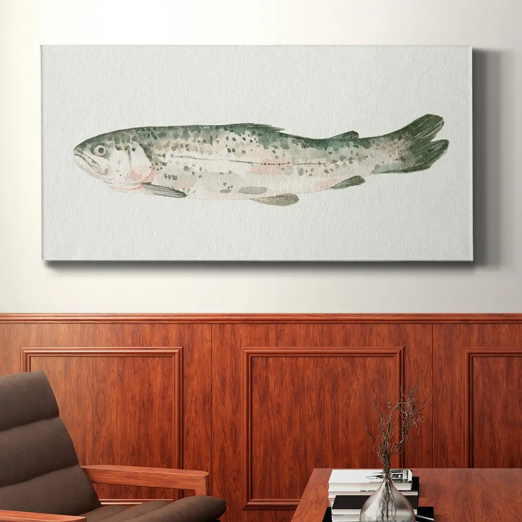 Fresh Catch II- Premium Gallery Wrapped Canvas - Ready to Hang A premium hand stretched gallery wrapped canvas print created to last. Featuring a beveled a solid wood stretcher bar, each piece comes ready to hand 3 SIZES AVAILABLE 8''X16'' - Overall Size 12"X24'' - Overall Size 20''x40'' - Overall Size Each piece is made to order. Built to Last Each piece comes ready to hang Solid wood stretcher Fade and Water resistant Made domestically
