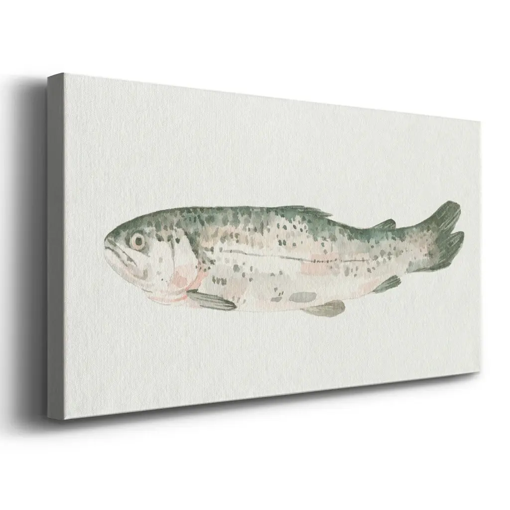 Fresh Catch II- Premium Gallery Wrapped Canvas - Ready to Hang A premium hand stretched gallery wrapped canvas print created to last. Featuring a beveled a solid wood stretcher bar, each piece comes ready to hand 3 SIZES AVAILABLE 8''X16'' - Overall Size 12"X24'' - Overall Size 20''x40'' - Overall Size Each piece is made to order. Built to Last Each piece comes ready to hang Solid wood stretcher Fade and Water resistant Made domestically