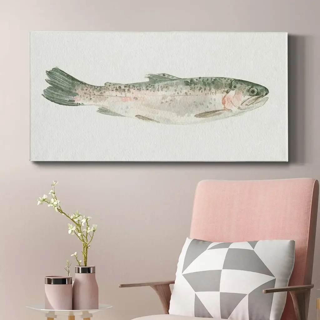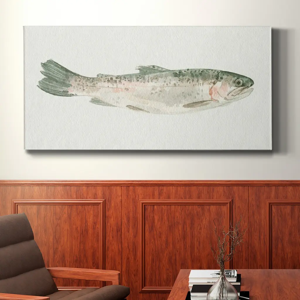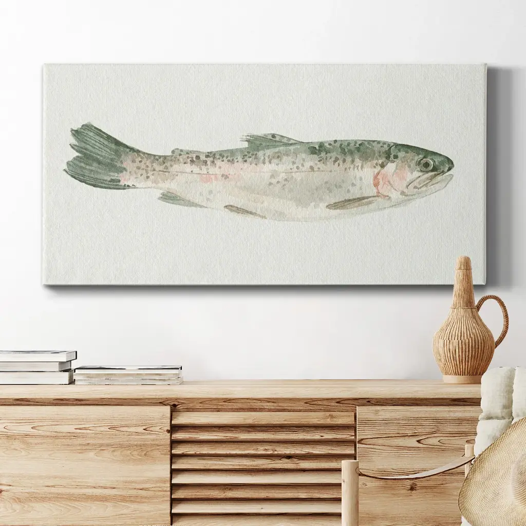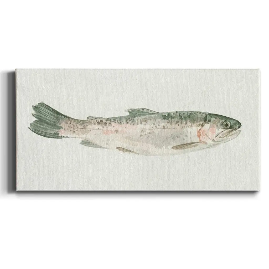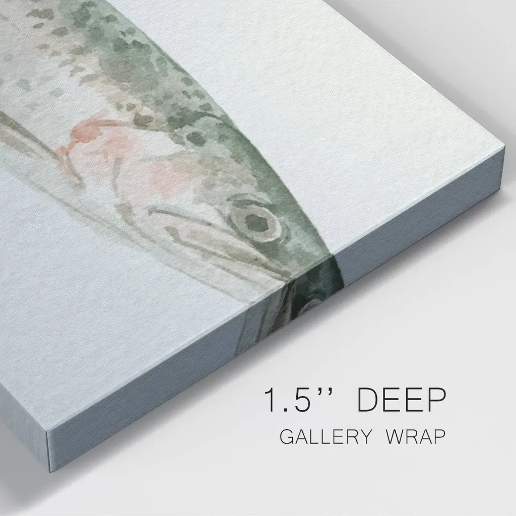 Fresh Catch III- Premium Gallery Wrapped Canvas - Ready to Hang A premium hand stretched gallery wrapped canvas print created to last. Featuring a beveled a solid wood stretcher bar, each piece comes ready to hand 3 SIZES AVAILABLE 8''X16'' - Overall Size 12"X24'' - Overall Size 20''x40'' - Overall Size Each piece is made to order. Built to Last Each piece comes ready to hang Solid wood stretcher Fade and Water resistant Made domestically