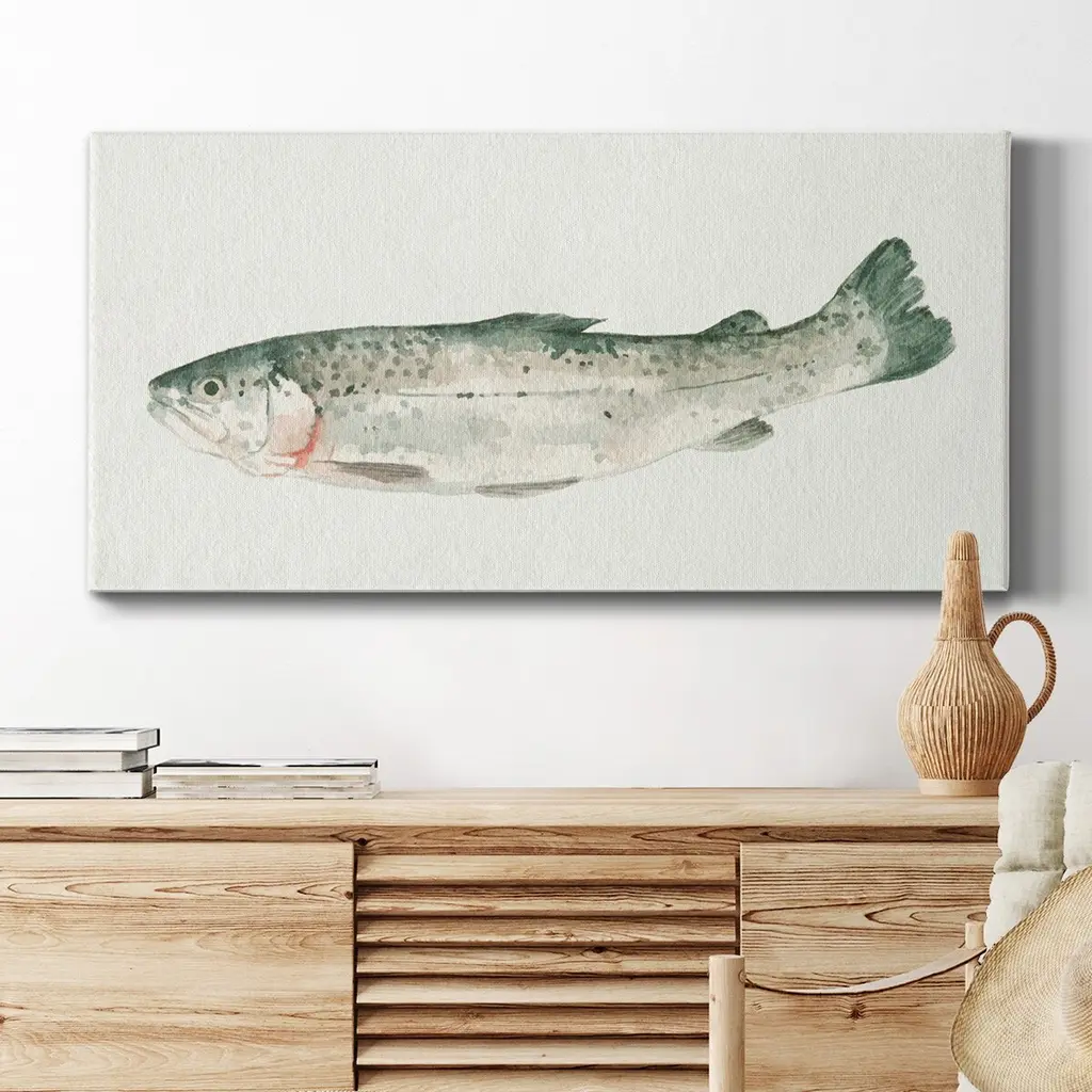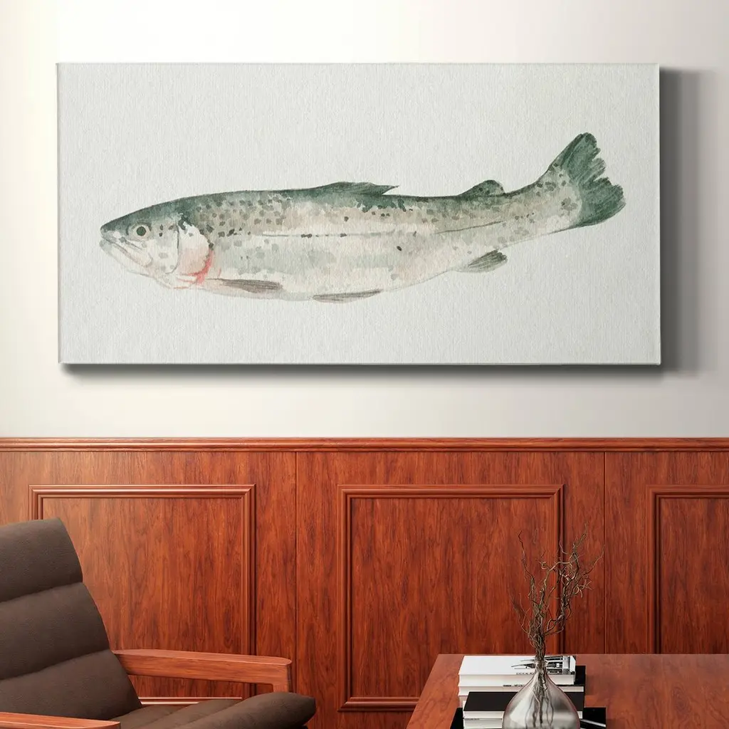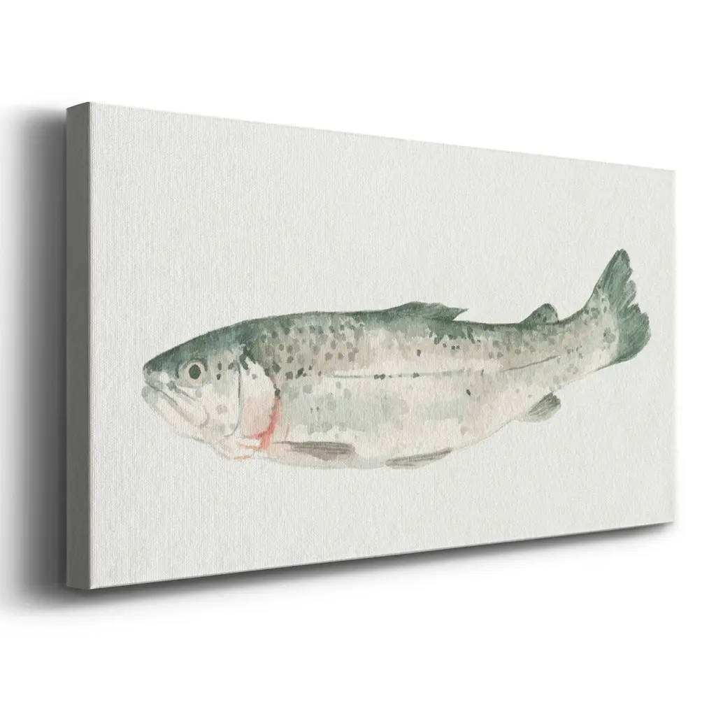 Fresh Catch IV- Premium Gallery Wrapped Canvas - Ready to Hang A premium hand stretched gallery wrapped canvas print created to last. Featuring a beveled a solid wood stretcher bar, each piece comes ready to hand 3 SIZES AVAILABLE 8''X16'' - Overall Size 12"X24'' - Overall Size 20''x40'' - Overall Size Each piece is made to order. Built to Last Each piece comes ready to hang Solid wood stretcher Fade and Water resistant Made domestically