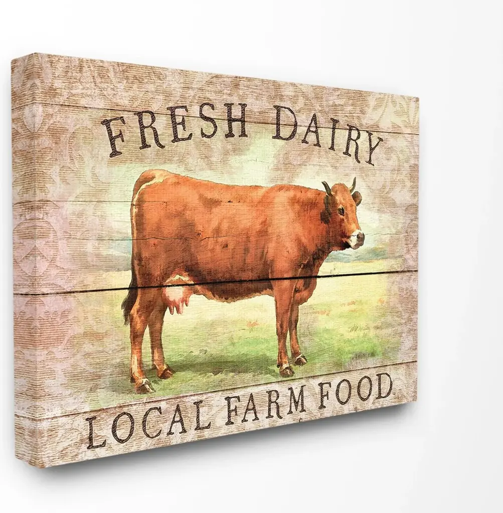 Fresh Dairy Local Farm Cow Planked Look Xxl Stretched Canvas Wall Art, 30"x40"