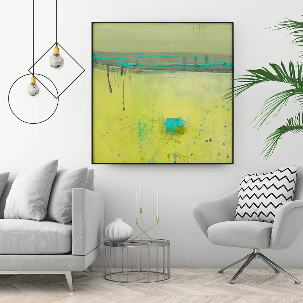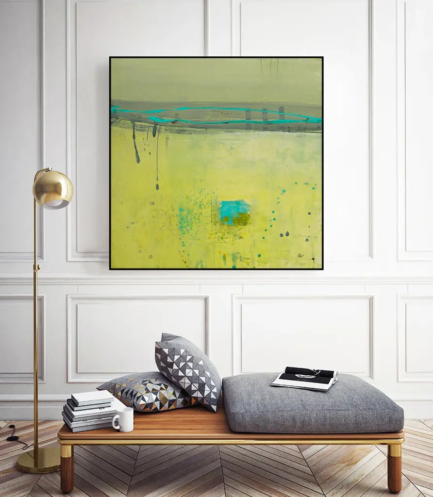 Your ready to hang artwork is printed on canvas then stretched and mounted to a 2-inch thick - hand stained black wood frame. Arrives at your door complete with an easy to use self-leveling hangking kit.