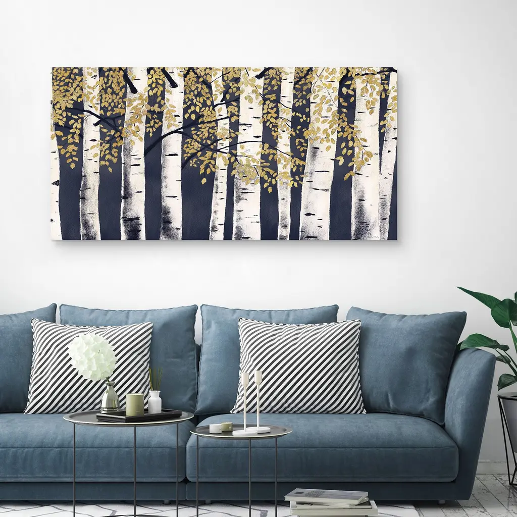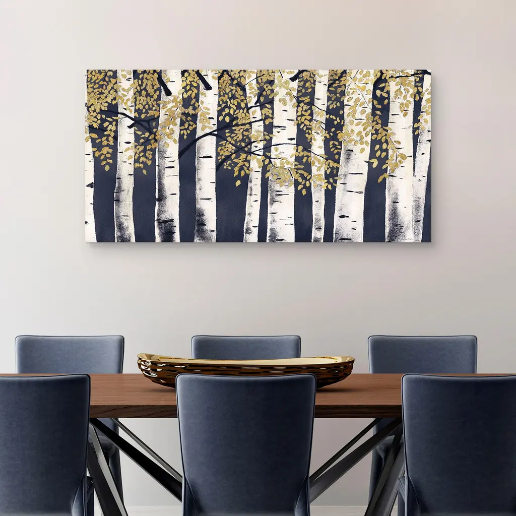 Fresh Forest Indigo Gold by James Wiens Canvas Art Print is produced with printing that covers the entirety of the canvas for a sleek and stylish museum-quality look. Our framed prints are made by expert craftsmen who strive to make each canvas the masterpiece