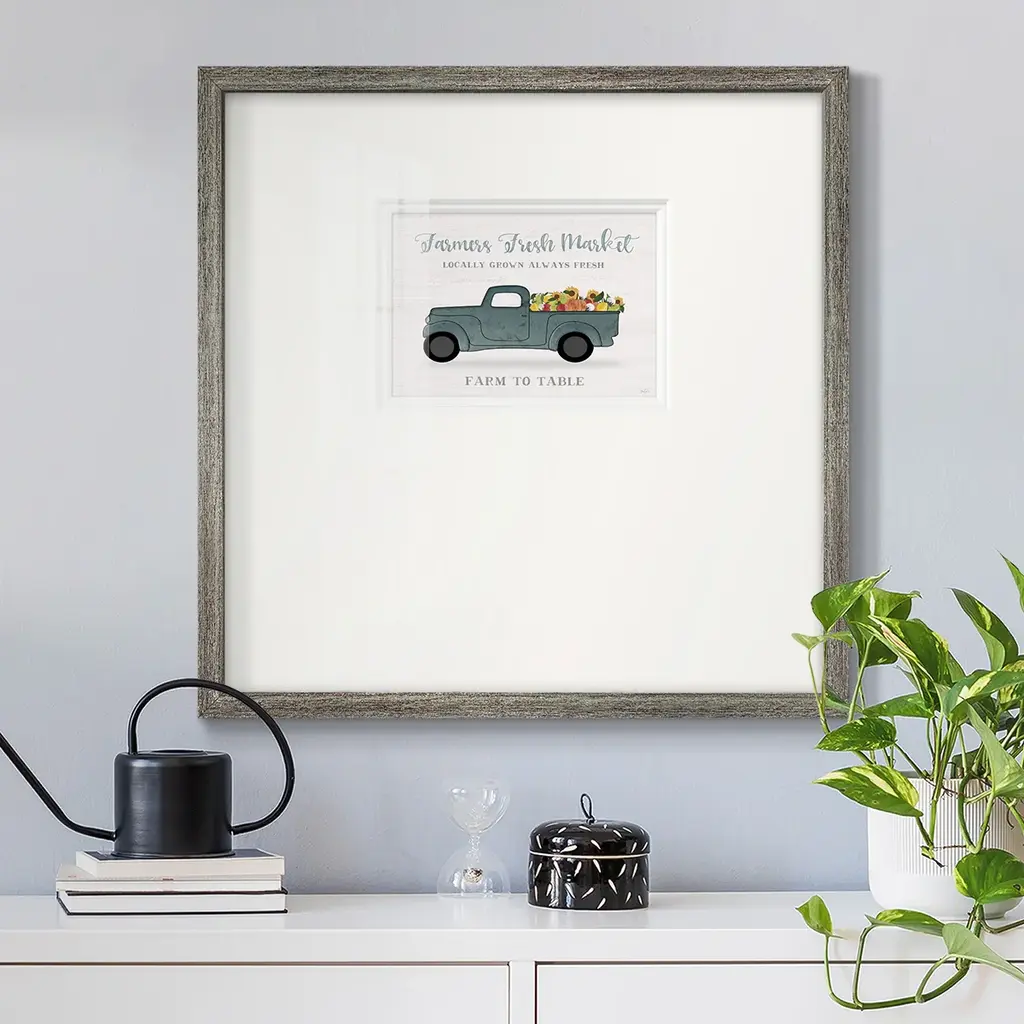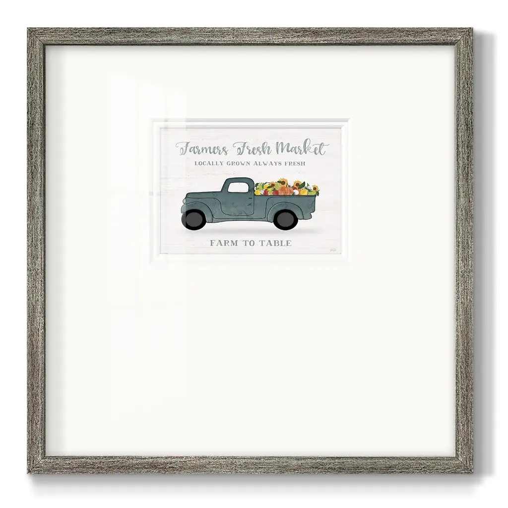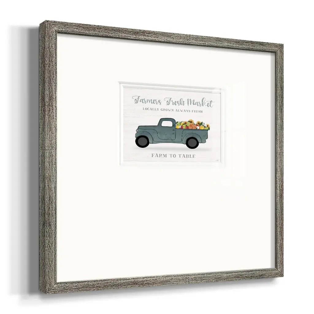 Fresh Sunflowers TruckPremium Framed Print A framed cold pressed paper print featuring superior double matting and quality frame. 2 SIZES AVAILABLE 16''X16''' - Overall Size 20''X20''' - Overall Size Each piece is made to order. Each piece comes with hanging hardware. Made in the USA Ready to Hang Giclee Paper Print Plexiglass Beveled Matt Board Double Matte Board