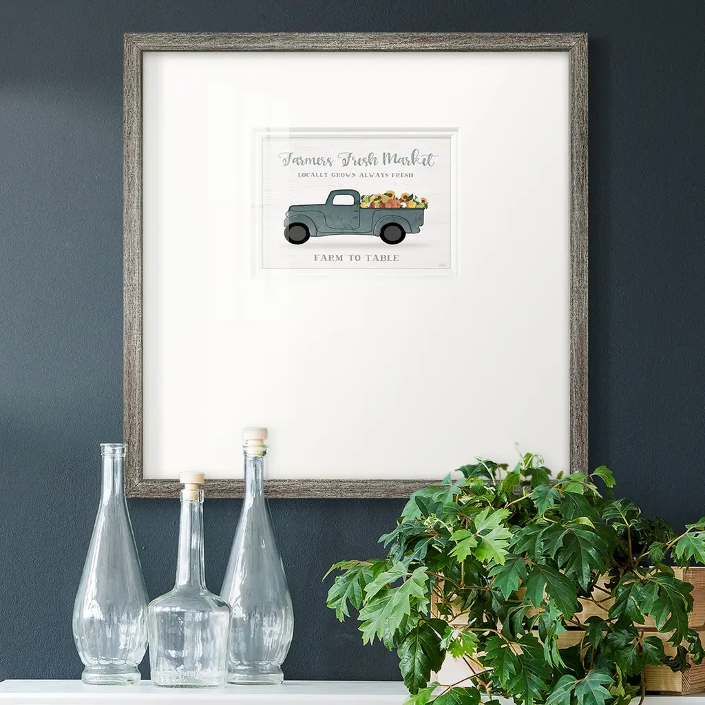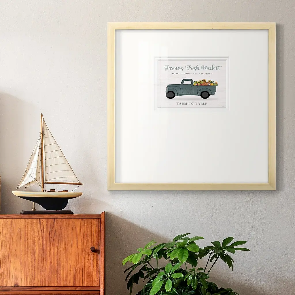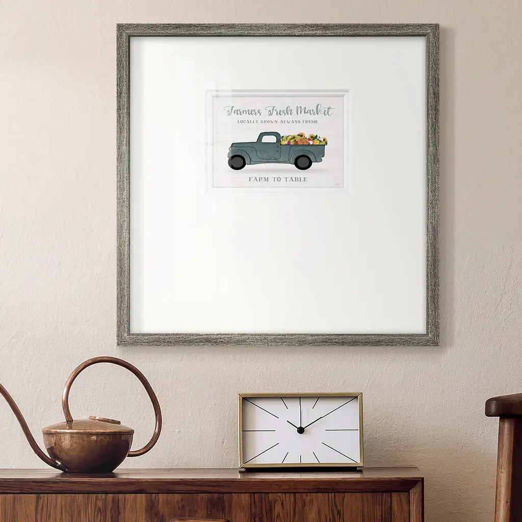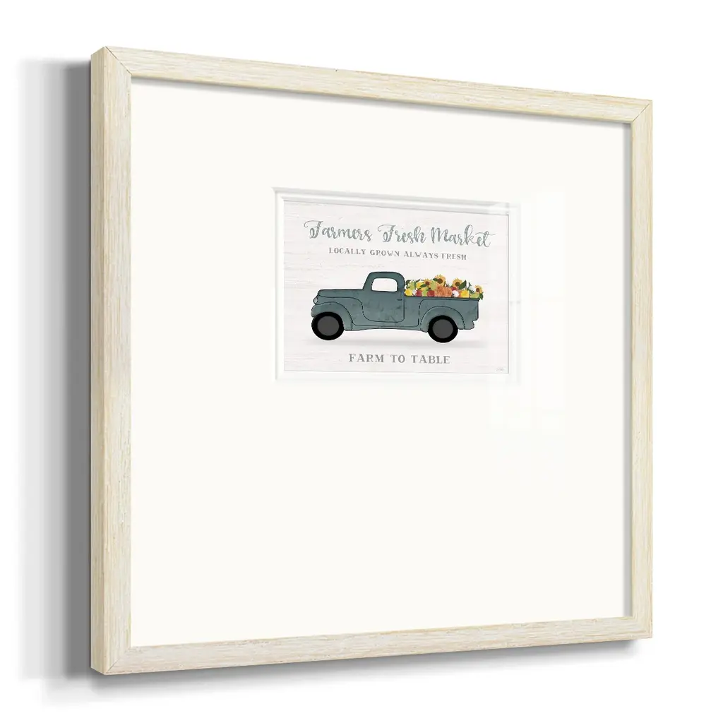 Fresh Sunflowers TruckPremium Framed Print A framed cold pressed paper print featuring superior double matting and quality frame. 2 SIZES AVAILABLE 16''X16''' - Overall Size 20''X20''' - Overall Size Each piece is made to order. Each piece comes with hanging hardware. Made in the USA Ready to Hang Giclee Paper Print Plexiglass Beveled Matt Board Double Matte Board
