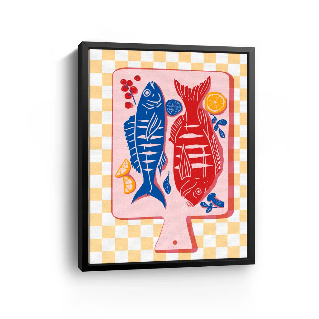 Fried Fish Canvas Giclee - Framed / Black / 24x32