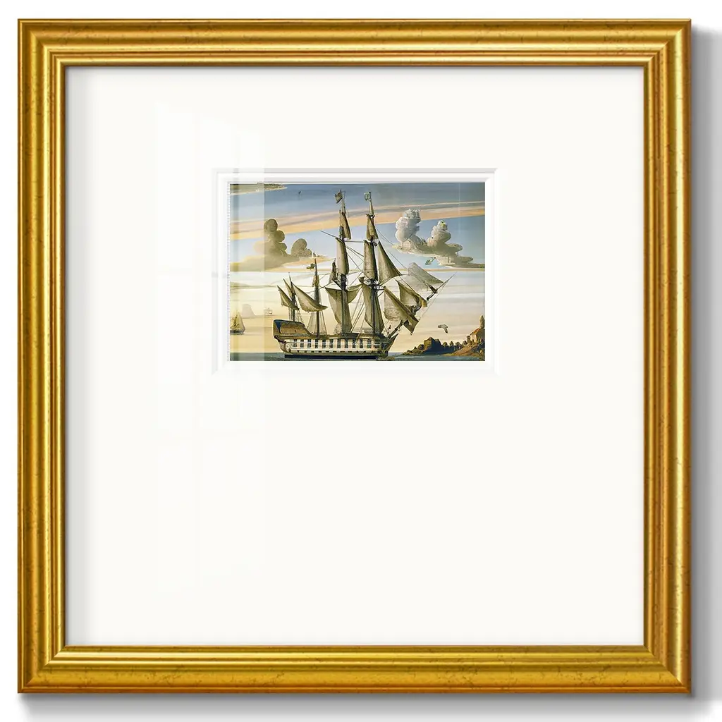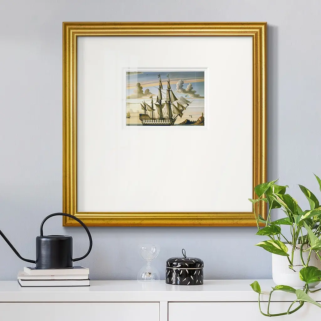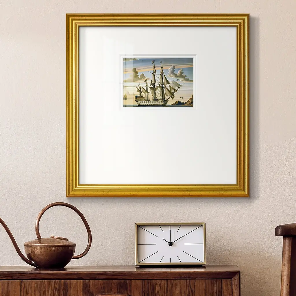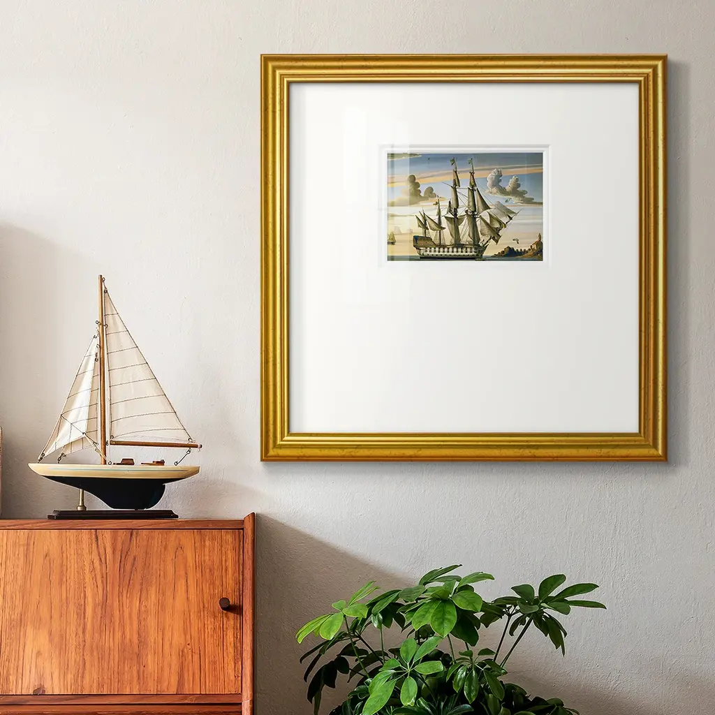 FrigatePremium Framed Print A framed cold pressed paper print featuring superior double matting and quality frame. 2 SIZES AVAILABLE 16''X16''' - Overall Size 20''X20''' - Overall Size Each piece is made to order. Each piece comes with hanging hardware. Made in the USA Ready to Hang Giclee Paper Print Plexiglass Beveled Matt Board Double Matte Board