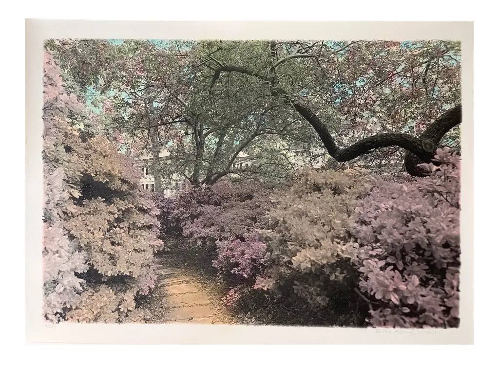 Artwork by Janet Van Arsdale printed with UV inks to high quality 1/8" thick brushed aluminum Dibond with a gloss UV/Anti-graffiti coating. 4 holes drilled for standoff hardware. Signature in the image. Includes Set of 4 1"D x 1"H Barrel aluminum stando