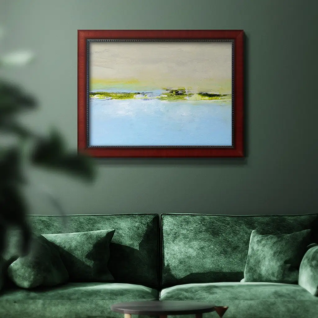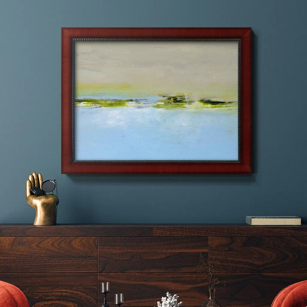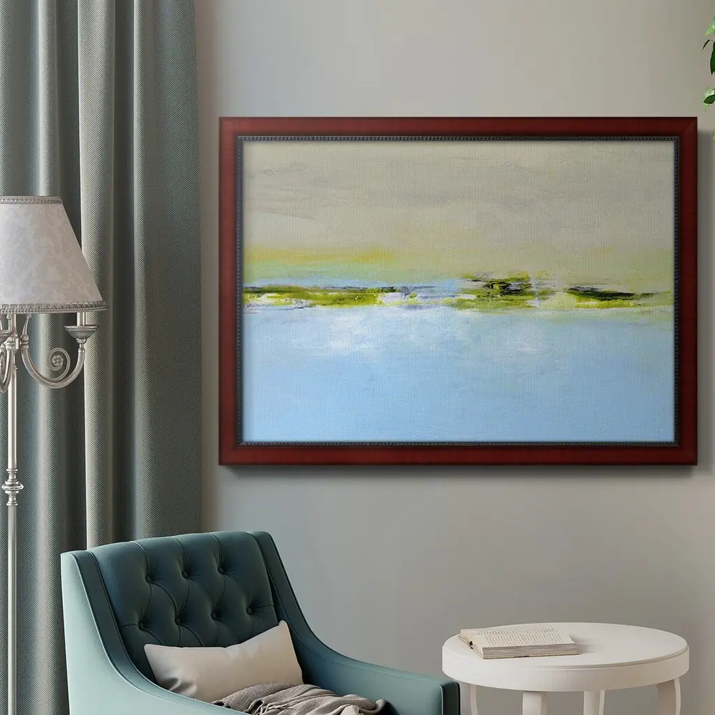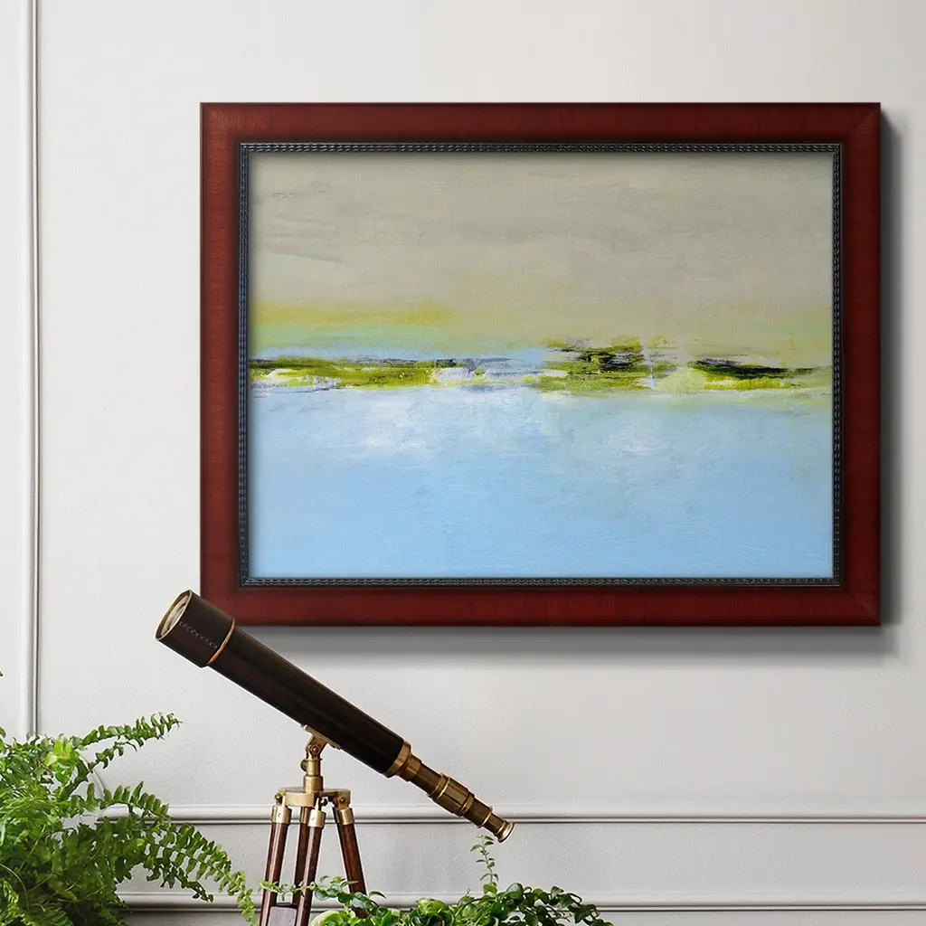 From the Terrace II Premium Framed Canvas- Ready to Hang A Premium Framed Canvas created to last. Framed in distressed wood and available in an array of sizes and colors Featuring a beveled a solid wood stretcher bar, each piece comes ready to hand 3 SIZES AVAILABLE 16''X20'' - Overall Size 18'X27'' - Overall Size 24''x36'' - Overall Size Each piece is made to order. Each piece comes with hanging hardware. Made in the USA Ready to Hang Giclee Paper Print Acrylic Glass Beveled Matt Board