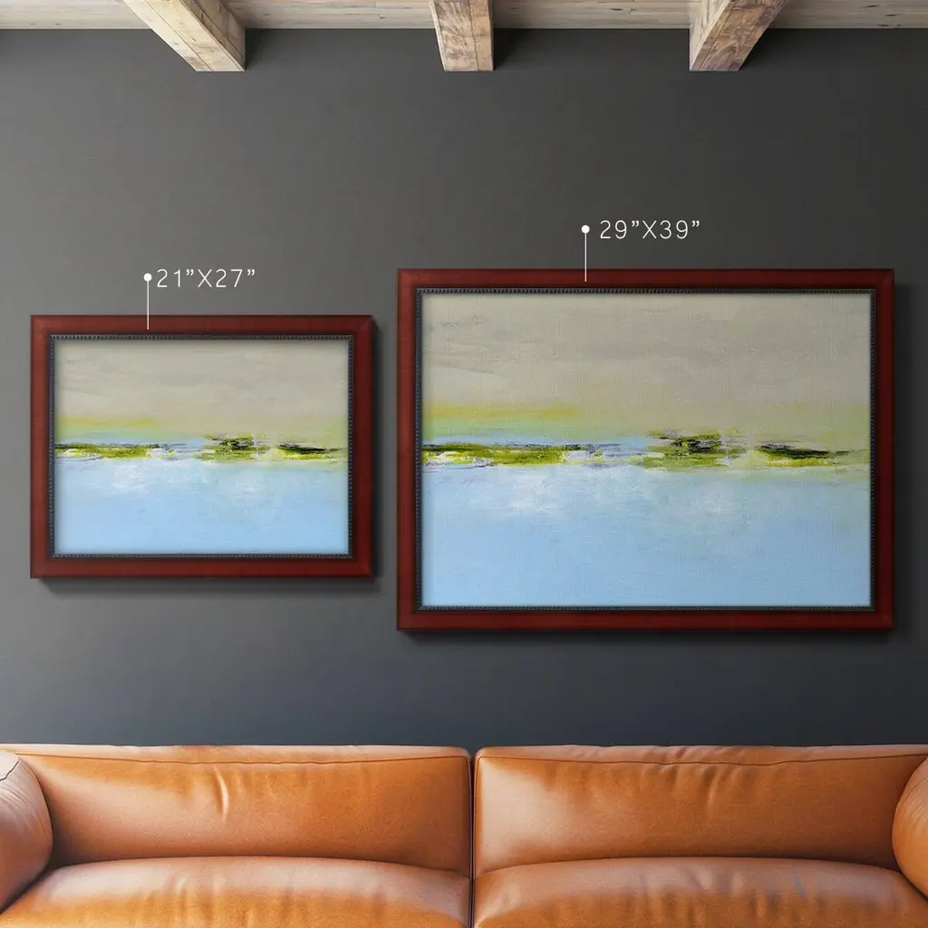 From the Terrace II Premium Framed Canvas- Ready to Hang A Premium Framed Canvas created to last. Framed in distressed wood and available in an array of sizes and colors Featuring a beveled a solid wood stretcher bar, each piece comes ready to hand 3 SIZES AVAILABLE 16''X20'' - Overall Size 18'X27'' - Overall Size 24''x36'' - Overall Size Each piece is made to order. Each piece comes with hanging hardware. Made in the USA Ready to Hang Giclee Paper Print Acrylic Glass Beveled Matt Board