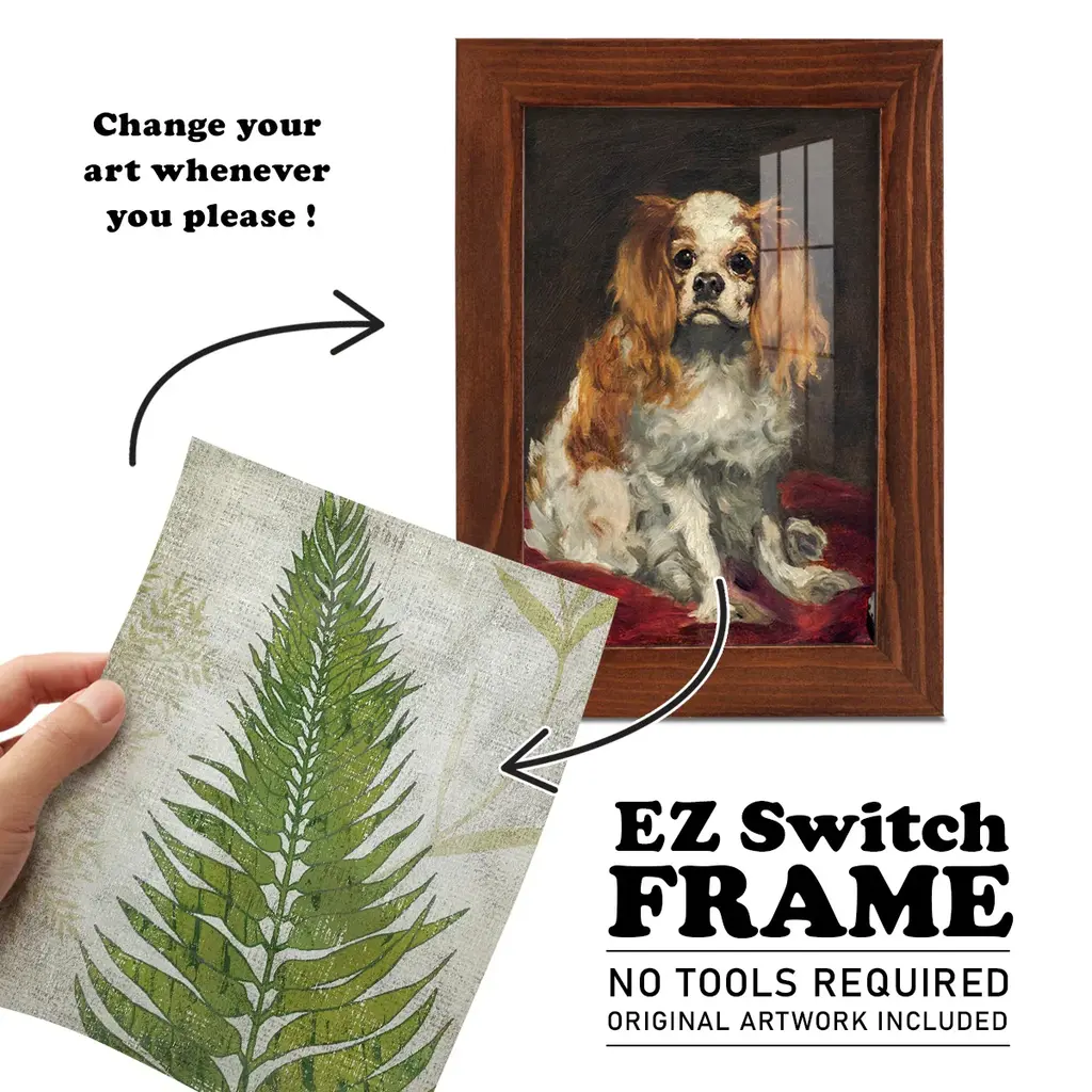 Frond II -EZ SWITCH Framed Print w/glass-Cherry Red A delightful, framed print. Featuring a solid wood frame with real wood glass. This premium print is giclee quality. In addition, every frame features a removable back and table top stand. This allows you to change your art in the future or to just stand the art on a table for a new look. We are sure you'll enjoy our new series of EZ SWITCH Framed Art. Solid Wood Frame Real Glass Removable / Replaceable Art Built in Tabletop Stand Sizes range from 4x6 up to 12x15 - buy just one or pair them up as sets as you see fit.