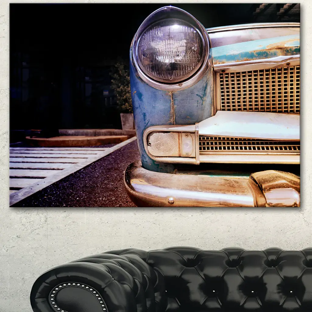 Front Headlight Of Vintage Car, Cars Canvas Art Print, 60"x28"