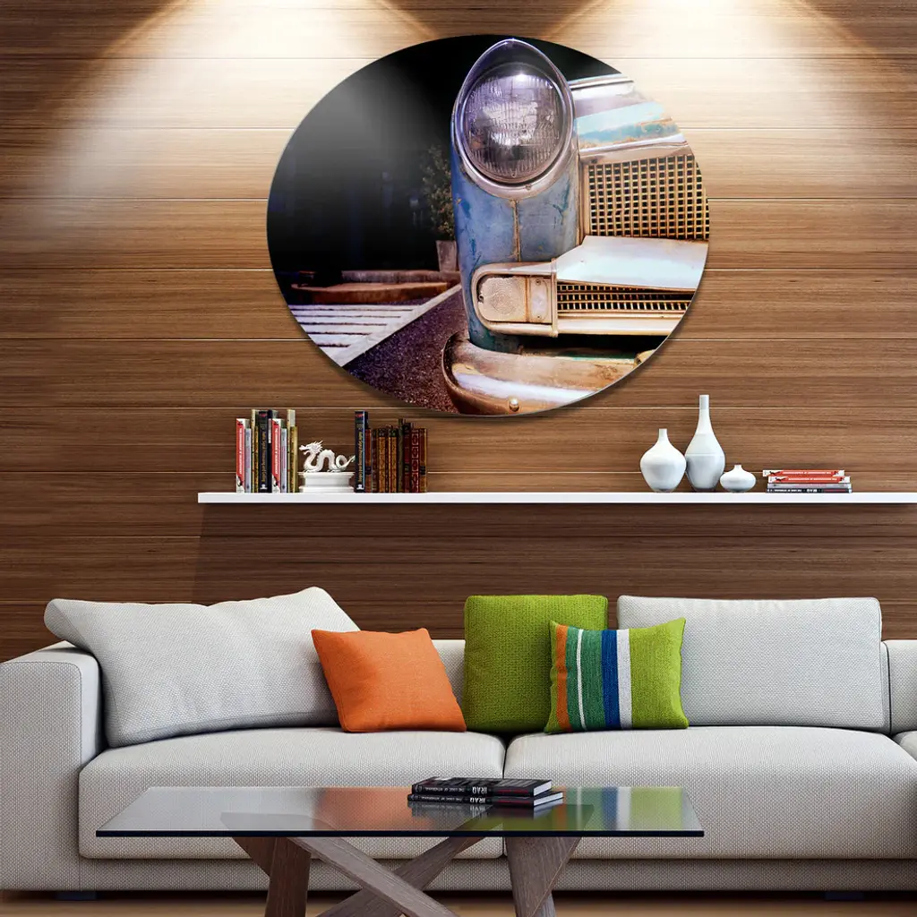 Front Headlight Of Vintage Car, Modern Cars Disc Metal Artwork, 23"