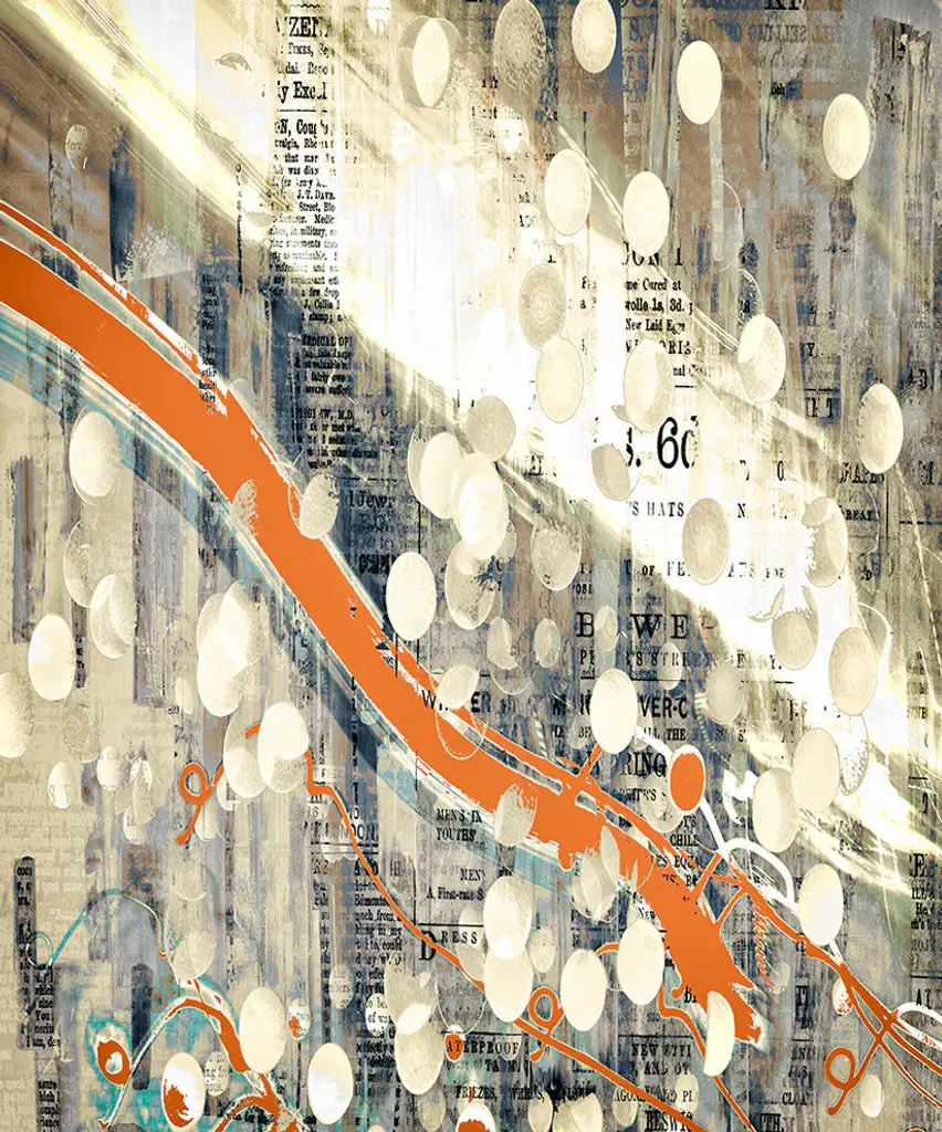 Artwork by Janet Van Arsdale printed with UV inks to high quality 1/8" thick brushed aluminum Dibond with a gloss UV/Anti-graffiti coating. 4 holes drilled for standoff hardware. Signature in the image. Includes Set of 4 1"D x 1"H Barrel aluminum stando