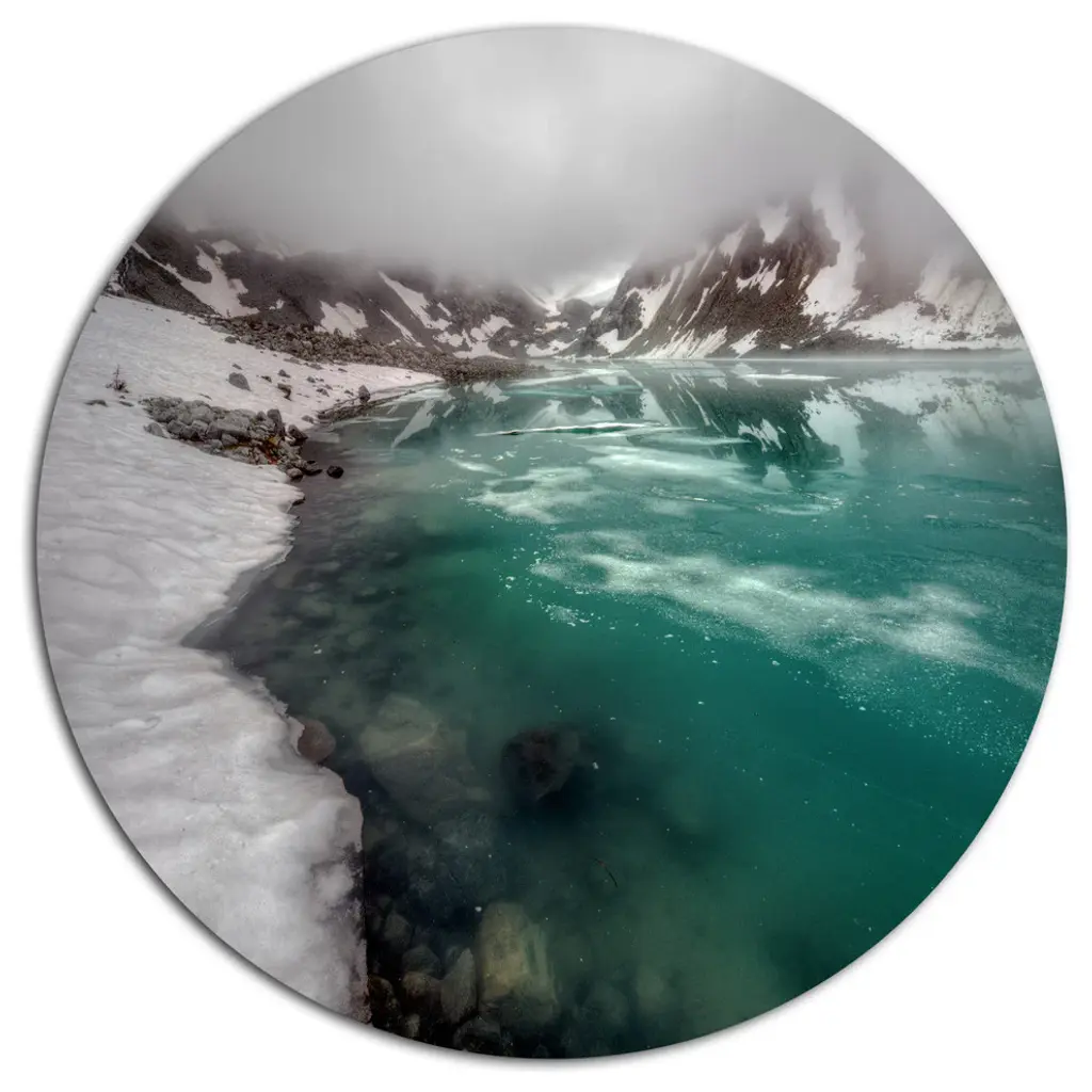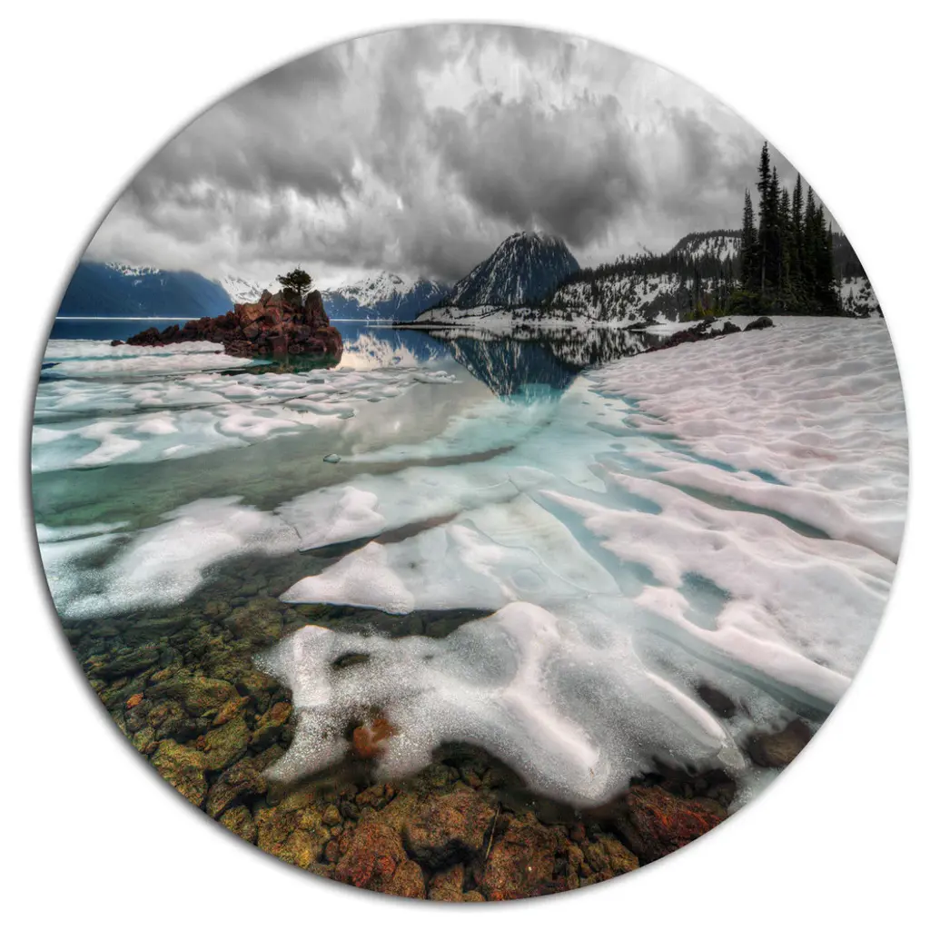 Frosted Crystal Clear Lake, Landscape Art Round Wall Art, 11"