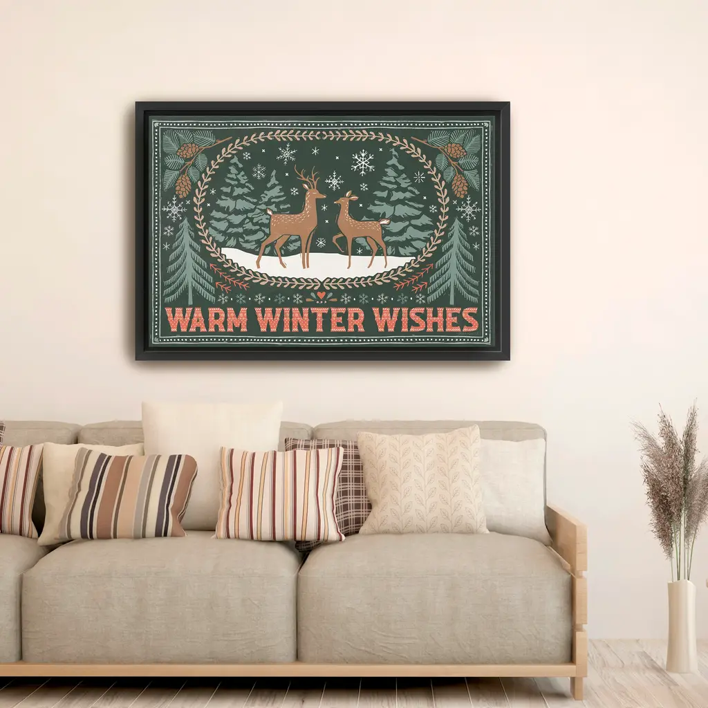 Let your walls reflect the wonder of winter with this elegant Christmas reindeer canvas print. Designed to evoke warmth and tradition, it's a timeless addition to your holiday decorating. Our Gallery Wrap Canvas Prints are proudly assembled with high quality materials in California, USA. Each piece is printed on a thick, archival grade canvas using Giclee technology. It is then hand-stretched by our experienced artisans over solid wood bars, which will not warp over time. The final product is a piece personally crafted for you to confidently display on your wall. Care and Assembly: Ensure that the location of your piece has little to no exposure to heat, sunlight, and moisture. Wipe clean, only if needed. Each piece includes hanging hardware to hang on your wall horizontally.