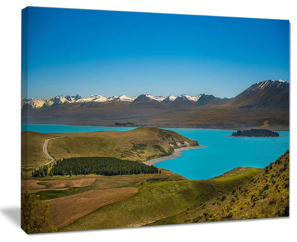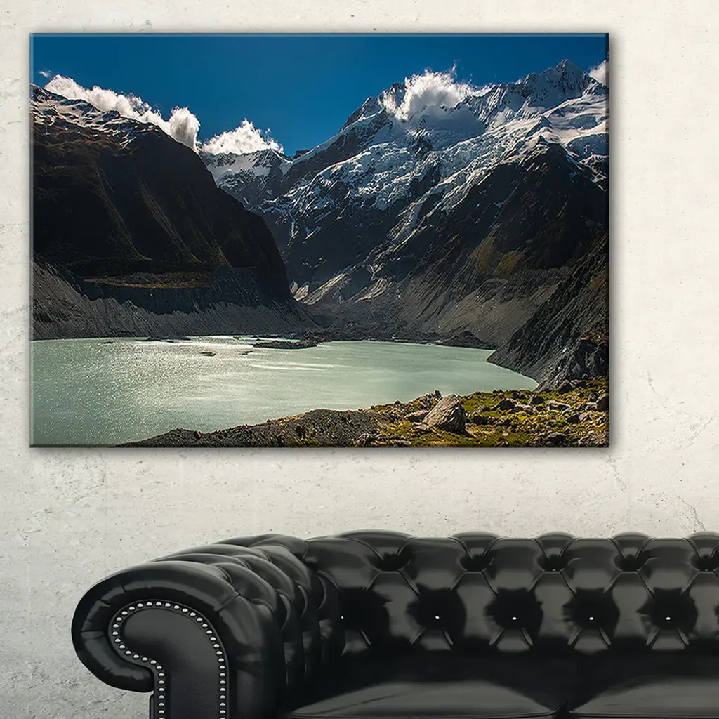 "Frosty Mountains Over Blue Lake" Landscape Art Print Canvas, 40"x20"