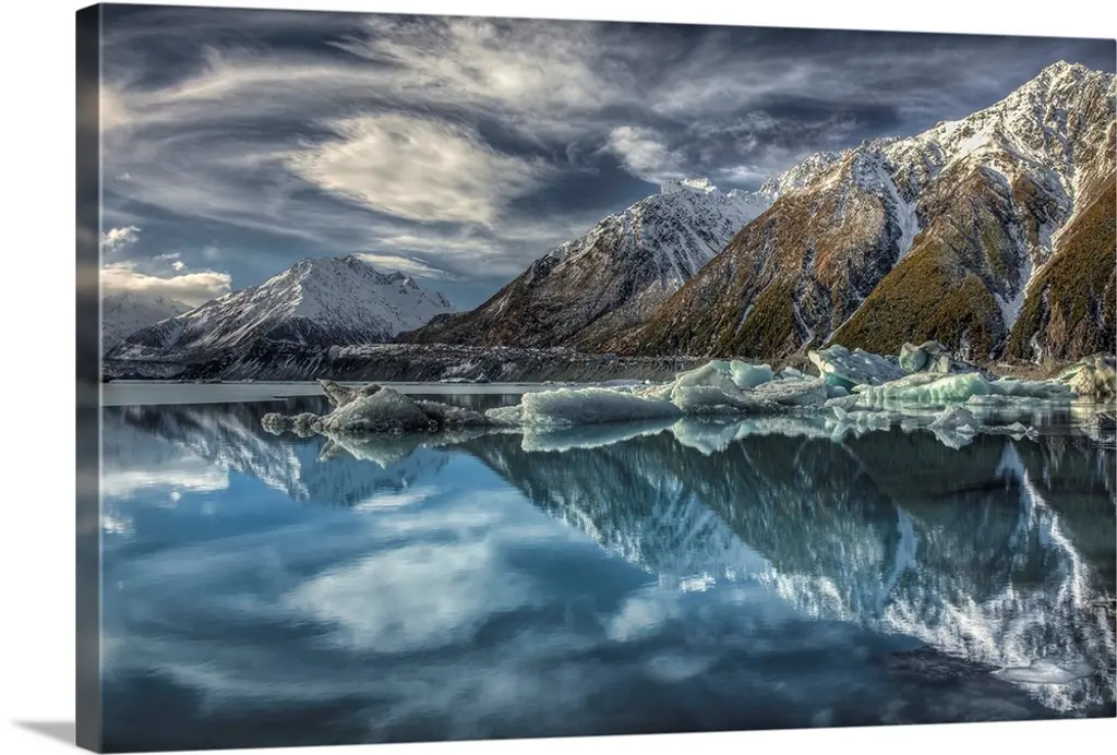 The Frosty Mountains Over Blue Lake canvas art print is sure to make an impression on anyone who sees it. This artwork is gallery wrapped around a 1-inch solid wood frame and arrives carefully packaged and entirely ready to hang on the wall. Design Art only uses the highest resolution and pigments to ensure a crisp colorful print that is never faded or pixelated. This artwork is sure to be a conversation starter in any home or office.