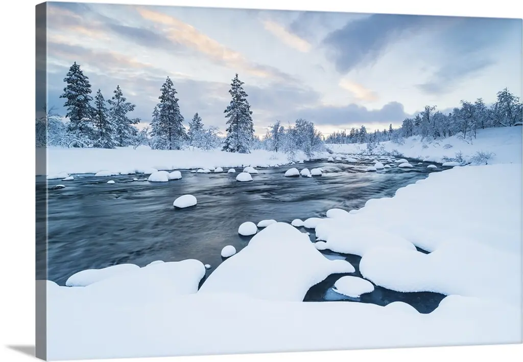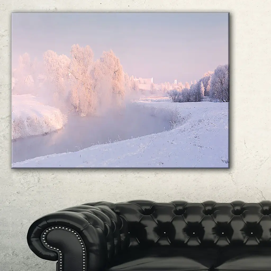 The Frosty Winter Sunshine Panorama canvas art print is sure to make an impression on anyone who sees it. This artwork is gallery wrapped around a 1-inch solid wood frame and arrives carefully packaged and entirely ready to hang on the wall. Design Art only uses the highest resolution and pigments to ensure a crisp colorful print that is never faded or pixelated. This artwork is sure to be a conversation starter in any home or office.