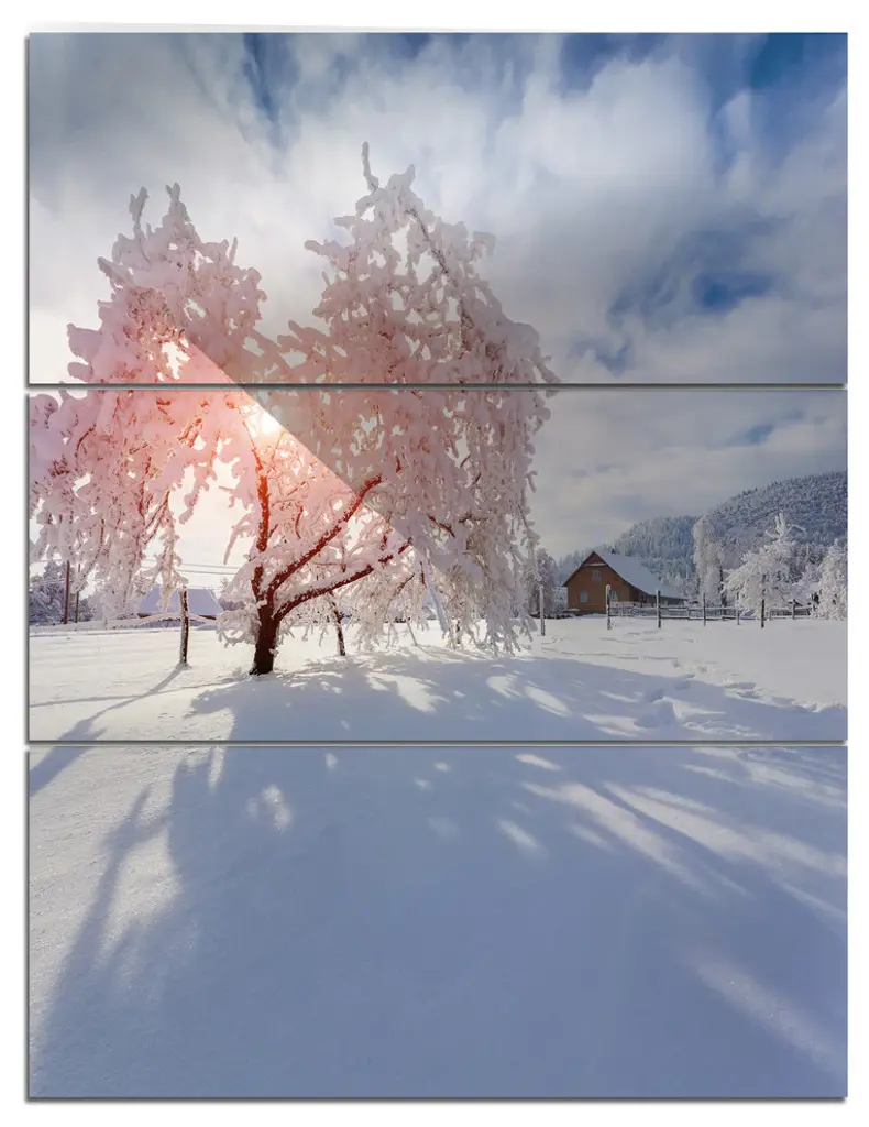 "Frosty Winter Tree By Rising" Photo Metal Wall Art, 3 Panels, 28"x36"