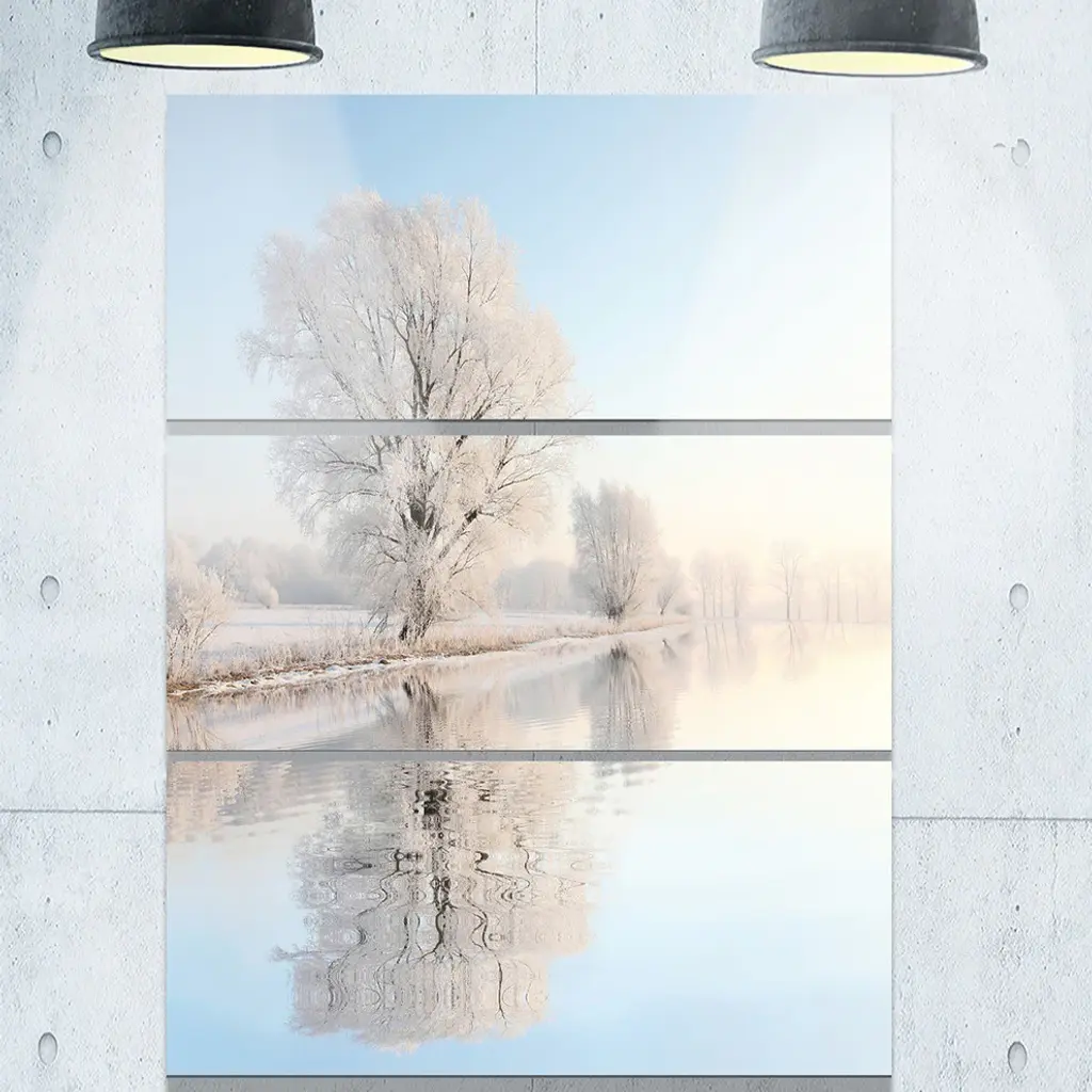 Bring contemporary abstraction to your home with this large 28W x 36H Metal Wall Art. This Frosty Winter Tree by Rising Metal Artwork makes it the focal point of any room or office. - White gloss coating ensures colors are extra vibrant with light reflection.- Aluminum grade sheet metal with 1-inch mounting frame on the back giving the illusion that the artwork is floating on the wall.- Mounting brackets are included along with instructions.- High quality digital images are created directly into a glossy aluminum panel producing a stunning and captivating print into the glossy finish of the metal.- Water, fire and scratch resistant HD aluminum panels.- Looks better than any photo paper and guaranteed to last at least 20 years- Easy to clean with a microfiber cloth. Colors are far superior to regular canvas art. - Easy to hang