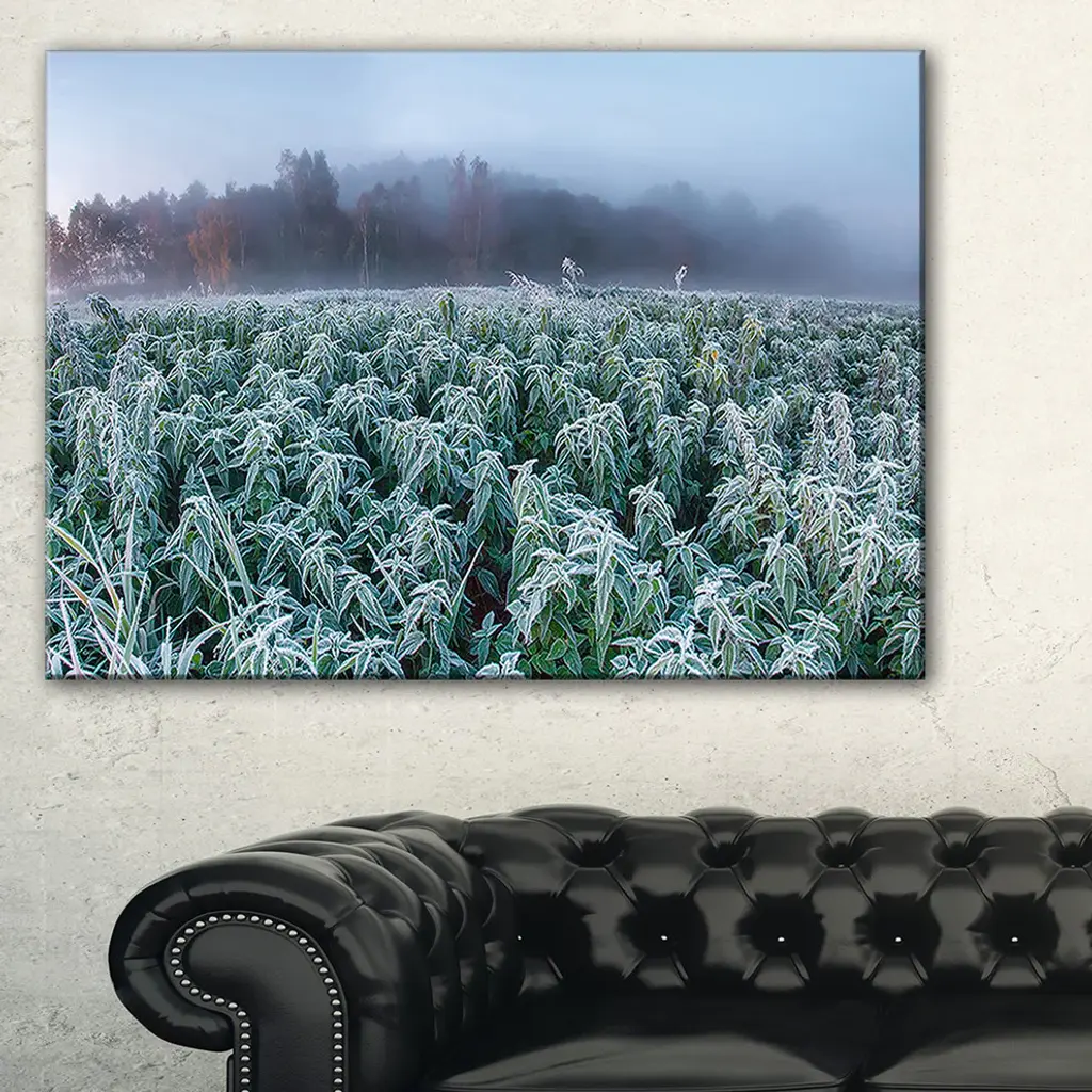 The Frozen Hemp Field in Autumn Morning canvas art print is sure to make an impression on anyone who sees it. This artwork is gallery wrapped around a 1-inch solid wood frame and arrives carefully packaged and entirely ready to hang on the wall. Design Art only uses the highest resolution and pigments to ensure a crisp colorful print that is never faded or pixelated. This artwork is sure to be a conversation starter in any home or office.
