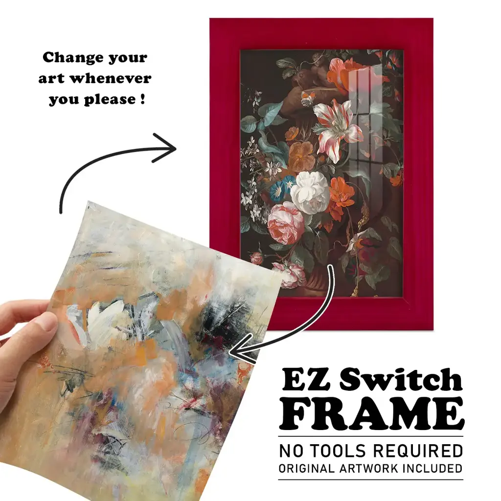 Frozen Spring I -EZ SWITCH Framed Print w/glass-Cherry Red A delightful, framed print. Featuring a solid wood frame with real wood glass. This premium print is giclee quality. In addition, every frame features a removable back and table top stand. This allows you to change your art in the future or to just stand the art on a table for a new look. We are sure you'll enjoy our new series of EZ SWITCH Framed Art. Solid Wood Frame Real Glass Removable / Replaceable Art Built in Tabletop Stand Sizes range from 4x6 up to 12x15 - buy just one or pair them up as sets as you see fit.