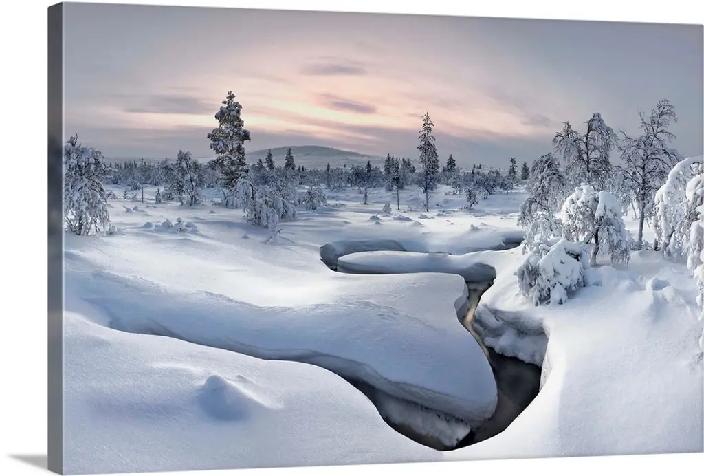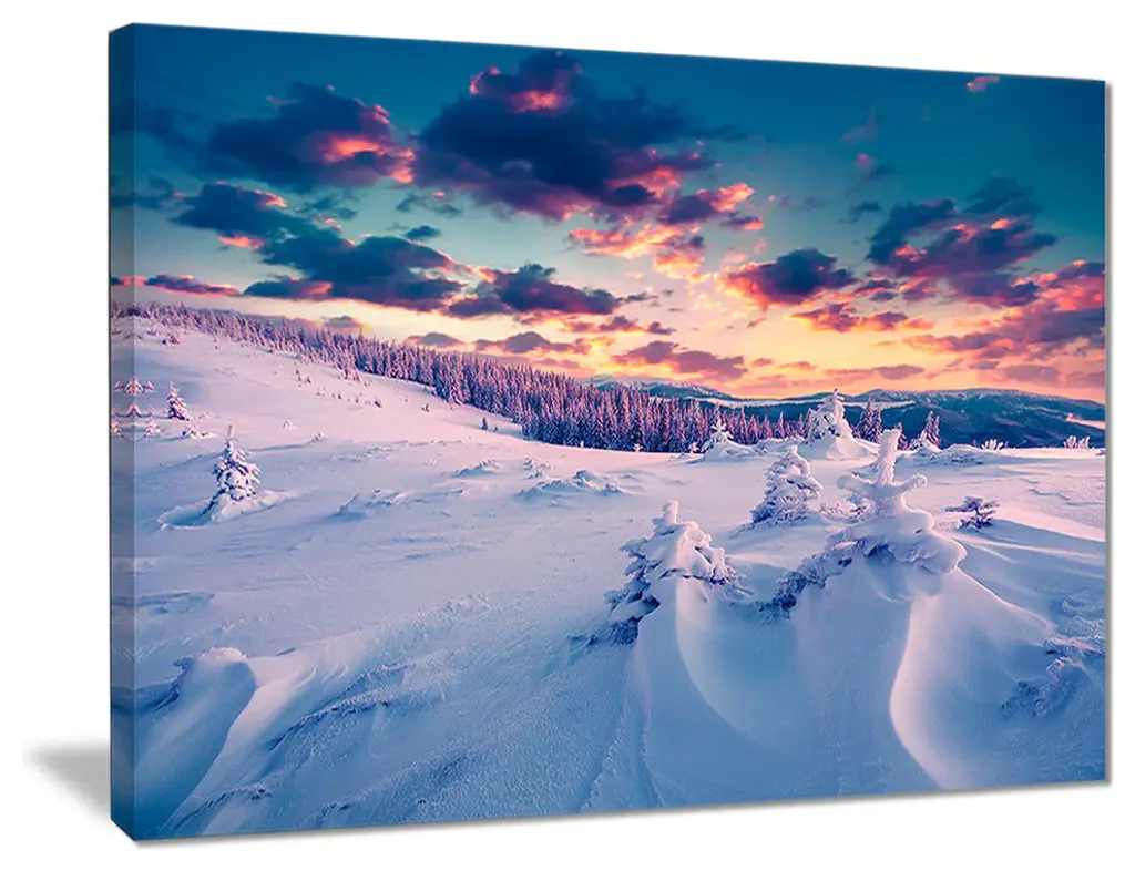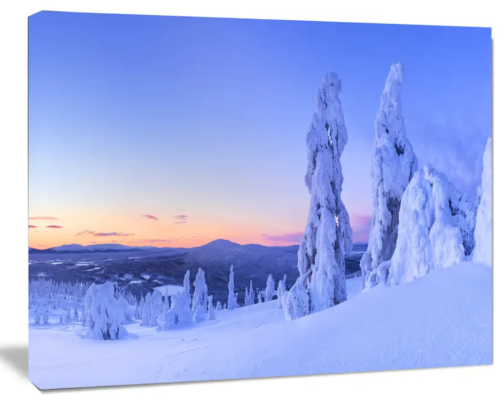 The Frozen Trees on Mountain Panorama canvas art print is sure to make an impression on anyone who sees it. This artwork is gallery wrapped around a 1-inch solid wood frame and arrives carefully packaged and entirely ready to hang on the wall. Design Art only uses the highest resolution and pigments to ensure a crisp colorful print that is never faded or pixelated. This artwork is sure to be a conversation starter in any home or office.