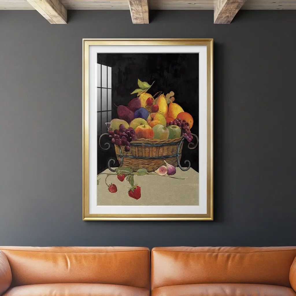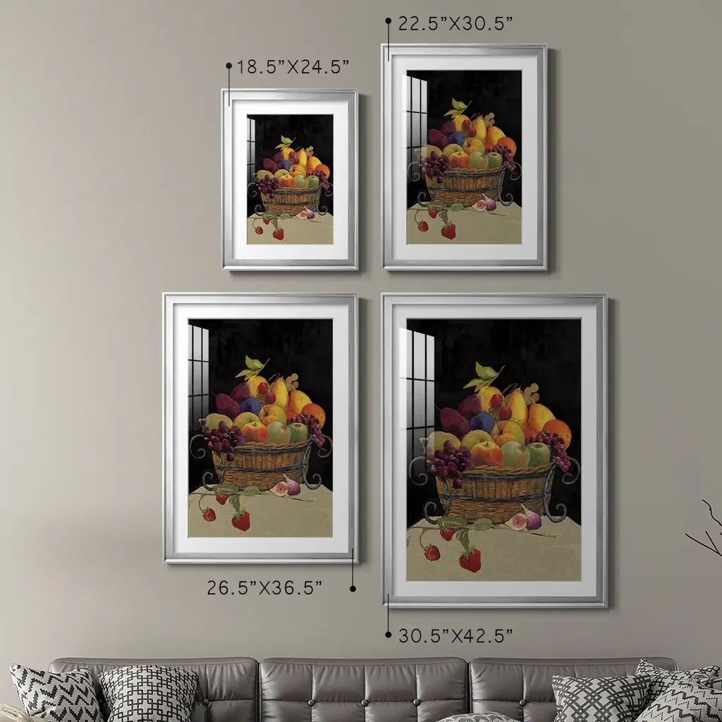 Fruit Basket I Revisit Premium Framed Print - Ready to Hang A Premium Framed Print created to last. Framed in distressed wood and available in an array of sizes and colors Featuring a beveled a solid wood stretcher bar, each piece comes ready to hand 4 SIZES AVAILABLE 30.5''X42.5'' - Overall Size 26.5'X36.5'' - Overall Size 22.5''x30.5'' - Overall Size 18.5''x24.5'' - Overall Size Each piece is made to order. Each piece comes with hanging hardware. Made in the USA Ready to Hang Giclee Paper Print Acrylic Glass Beveled Matt Board