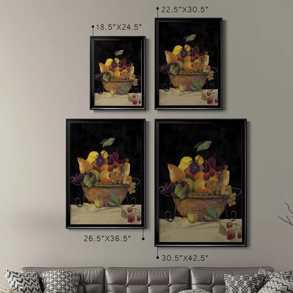 Fruit Basket II Revisit Premium Framed Print - Ready to Hang A Premium Framed Print created to last. Framed in distressed wood and available in an array of sizes and colors Featuring a beveled a solid wood stretcher bar, each piece comes ready to hand 4 SIZES AVAILABLE 30.5''X42.5'' - Overall Size 26.5'X36.5'' - Overall Size 22.5''x30.5'' - Overall Size 18.5''x24.5'' - Overall Size Each piece is made to order. Each piece comes with hanging hardware. Made in the USA Ready to Hang