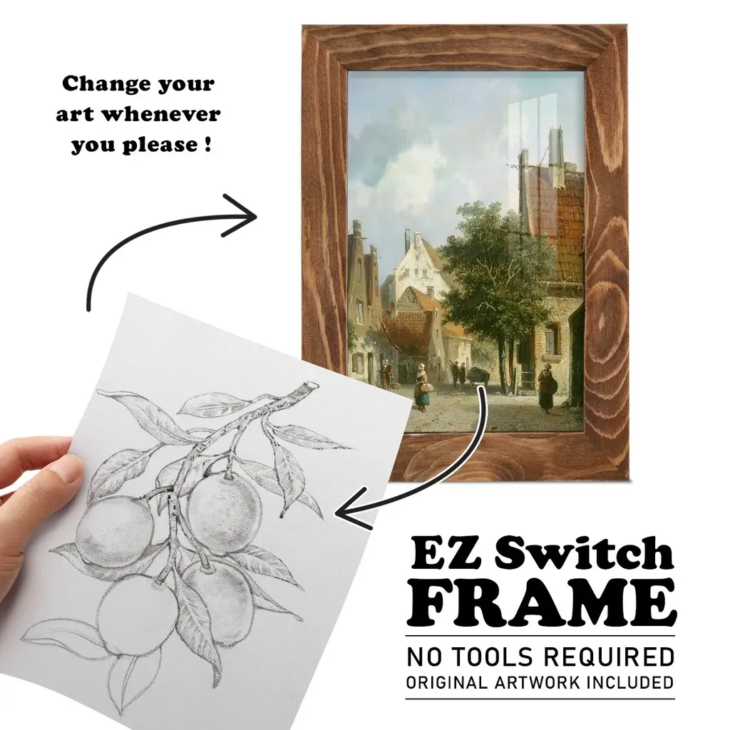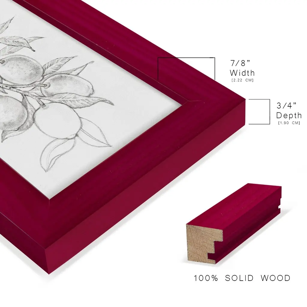 FruitBearing Branch I -EZ SWITCH Framed Print w/glass-Cherry Red A delightful, framed print. Featuring a solid wood frame with real wood glass. This premium print is giclee quality. In addition, every frame features a removable back and table top stand. This allows you to change your art in the future or to just stand the art on a table for a new look. We are sure you'll enjoy our new series of EZ SWITCH Framed Art. Solid Wood Frame Real Glass Removable / Replaceable Art Built in Tabletop Stand Sizes range from 4x6 up to 12x15 - buy just one or pair them up as sets as you see fit.