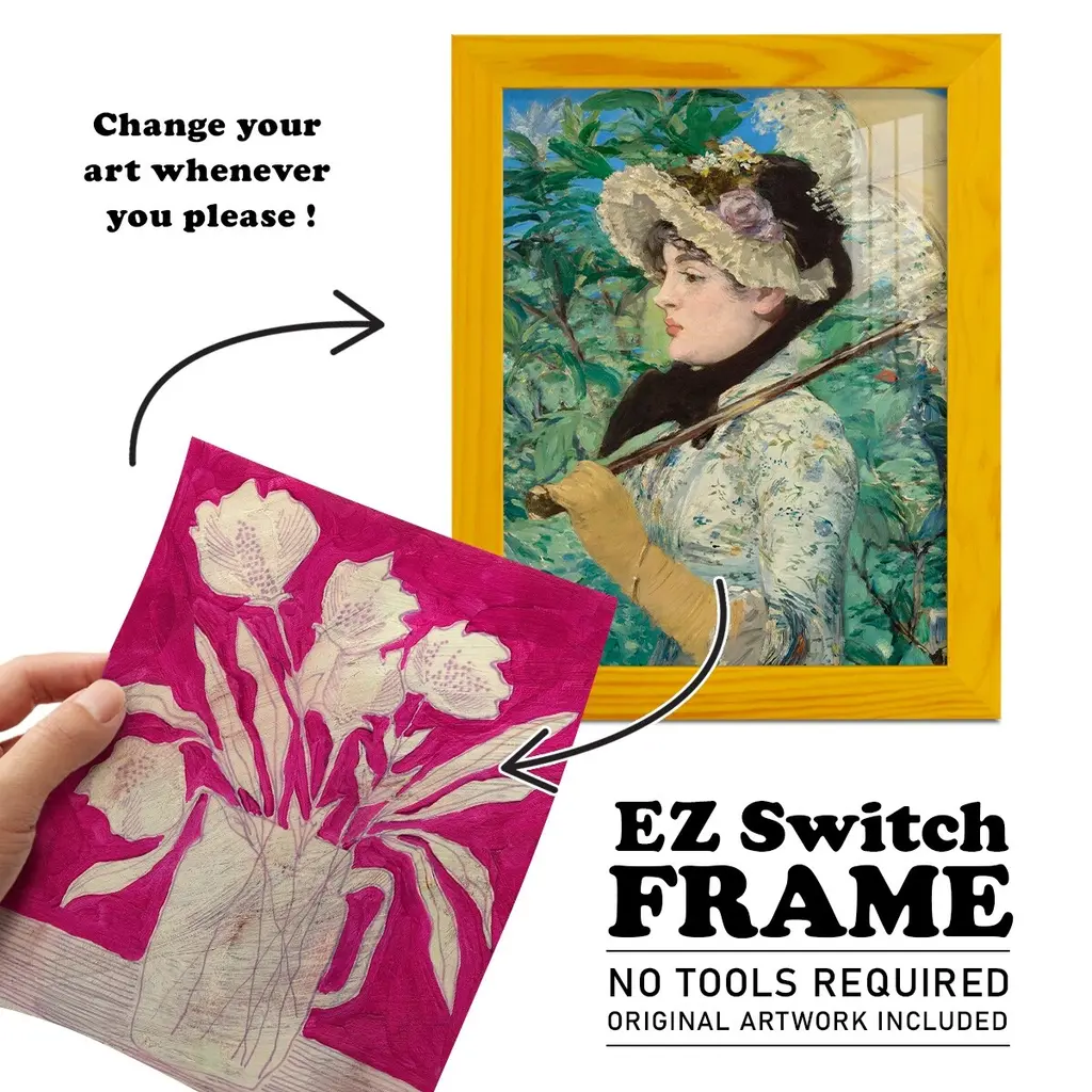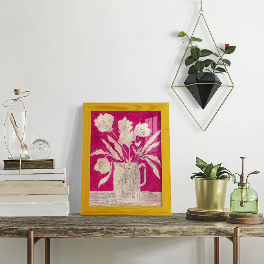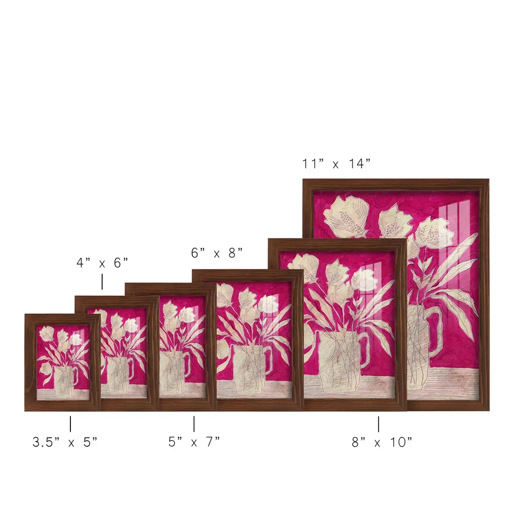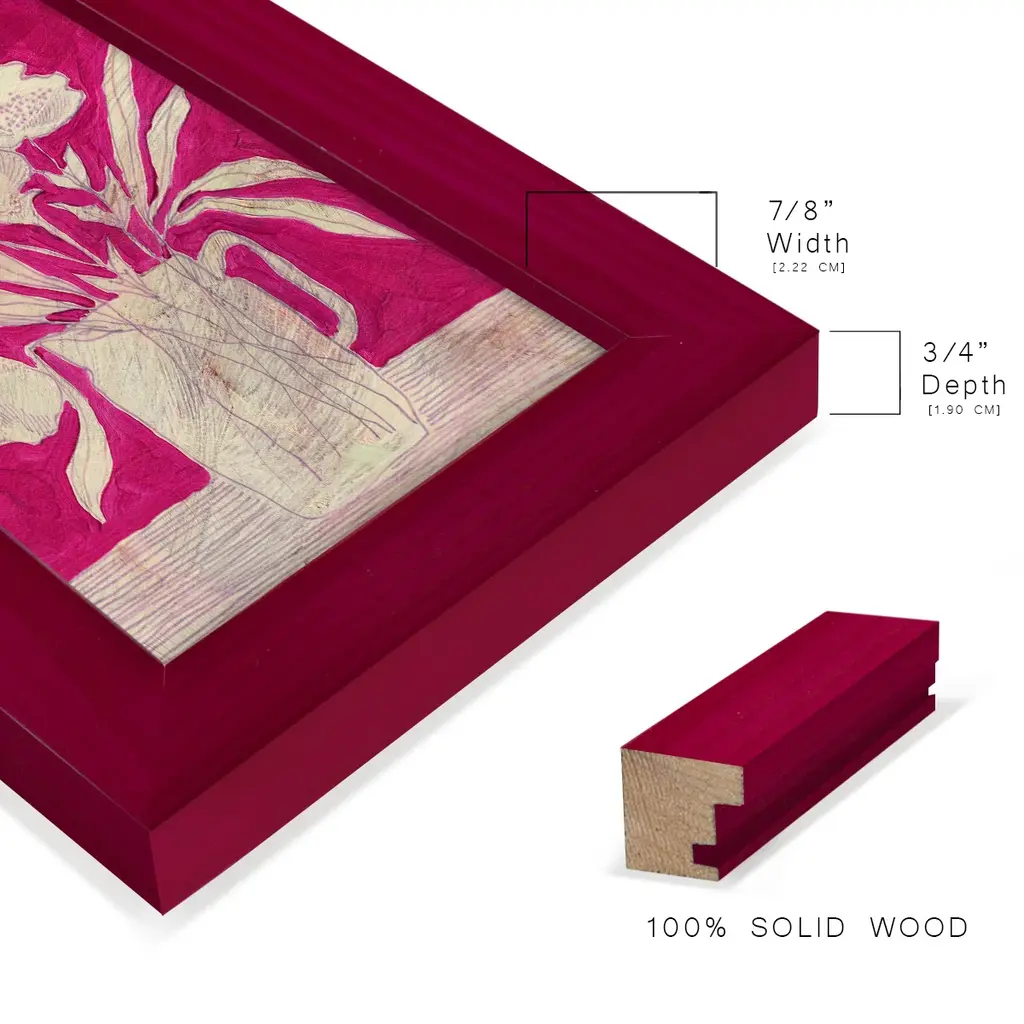 Fuchsia Arrangement II -EZ SWITCH Framed Print w/glass-Cherry Red A delightful, framed print. Featuring a solid wood frame with real wood glass. This premium print is giclee quality. In addition, every frame features a removable back and table top stand. This allows you to change your art in the future or to just stand the art on a table for a new look. We are sure you'll enjoy our new series of EZ SWITCH Framed Art. Solid Wood Frame Real Glass Removable / Replaceable Art Built in Tabletop Stand Sizes range from 4x6 up to 12x15 - buy just one or pair them up as sets as you see fit.