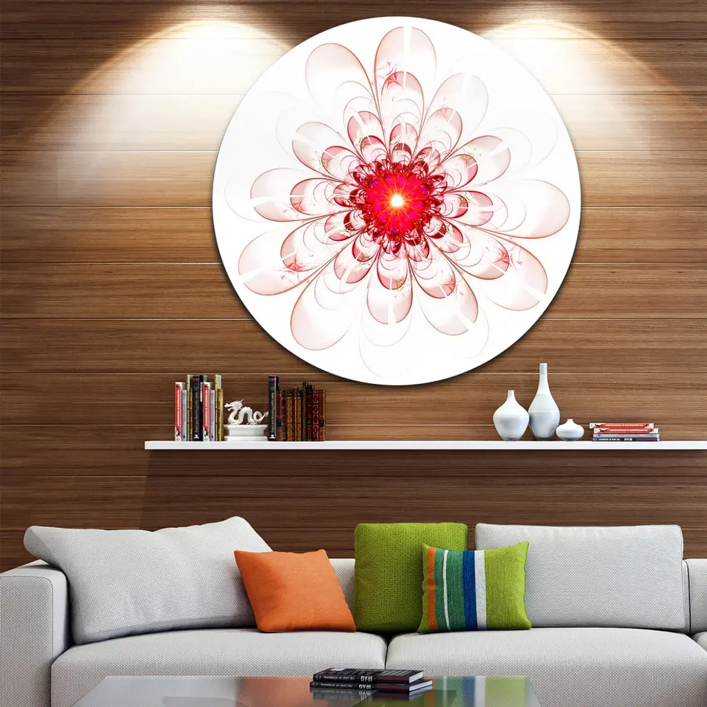 Bring Contemporary Abstraction to your home with this large Circle Metal wall art. This Full Bloom Fractal Flower in Red Metal Artwork makes it the focal point of any room or office. - White Gloss Coating ensures colors are extra vibrant with light reflection.- Aluminum grade Sheet Metal with 1 inch mounting frame on the back giving the illusion that the artwork is floating on the wall..- Mounting Brackets are included along with instructions.- High Quality Digital images are created directly into a glossy aluminum panel producing a stunning and captivating print into the glossy finish of the metal.- Water, Fire and Scratch resistant HD Aluminum panels.- Looks better than any photo paper and guaranteed to last at least 20 years- Easy to clean with a microfiber cloth. Colors are far superior to regular Canvas Art. - Easy to Hang