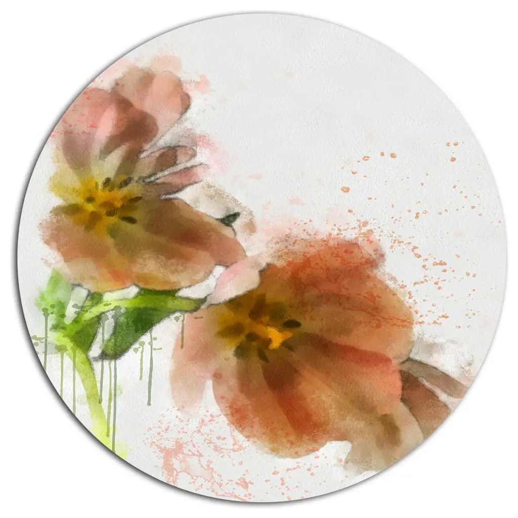 Bring Contemporary Abstraction to your home with this large Circle Metal wall art. This Full Bloom Orange Rose Watercolor Metal Artwork makes it the focal point of any room or office. - White Gloss Coating ensures colors are extra vibrant with light reflection.- Aluminum grade Sheet Metal with 1 inch mounting frame on the back giving the illusion that the artwork is floating on the wall..- Mounting Brackets are included along with instructions.- High Quality Digital images are created directly into a glossy aluminum panel producing a stunning and captivating print into the glossy finish of the metal.- Water, Fire and Scratch resistant HD Aluminum panels.- Looks better than any photo paper and guaranteed to last at least 20 years- Easy to clean with a microfiber cloth. Colors are far superior to regular Canvas Art. - Easy to Hang
