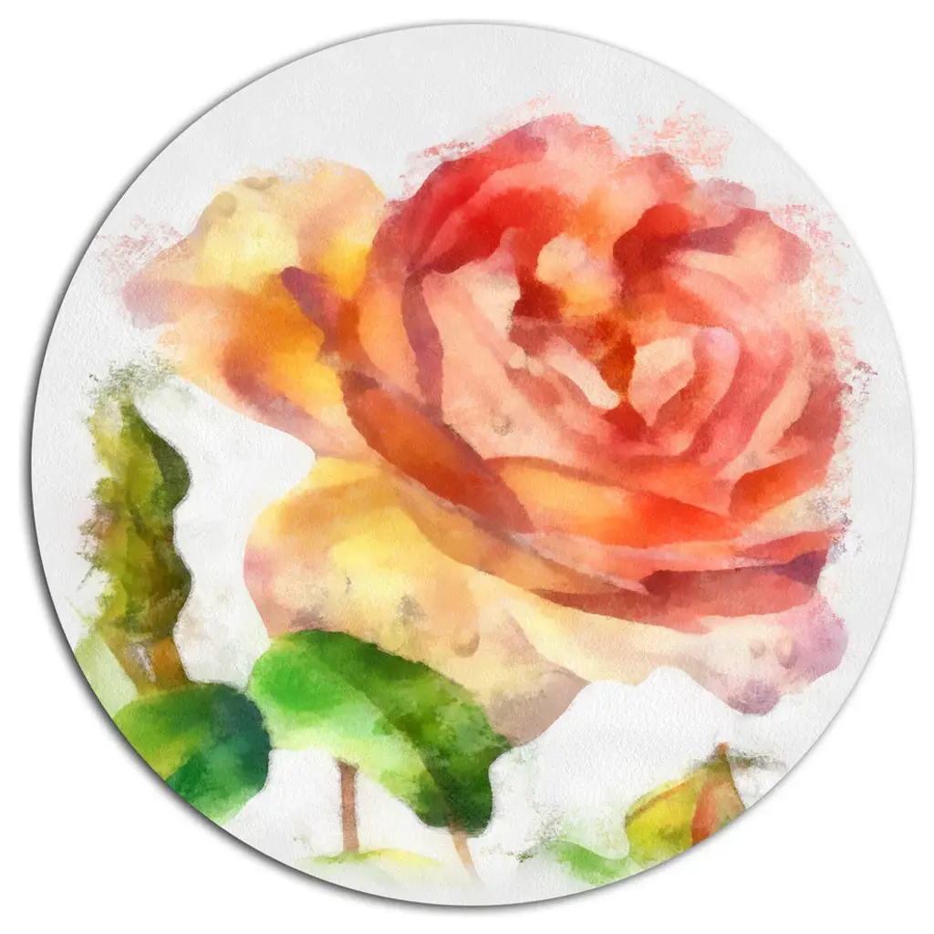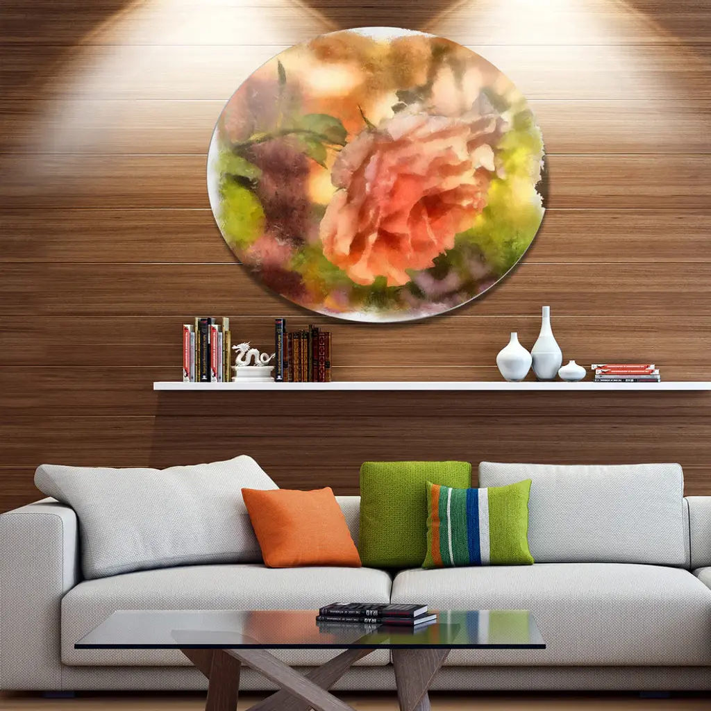Full Bloom Orange Rose Watercolor, Floral Round Metal Wall Art, 23"