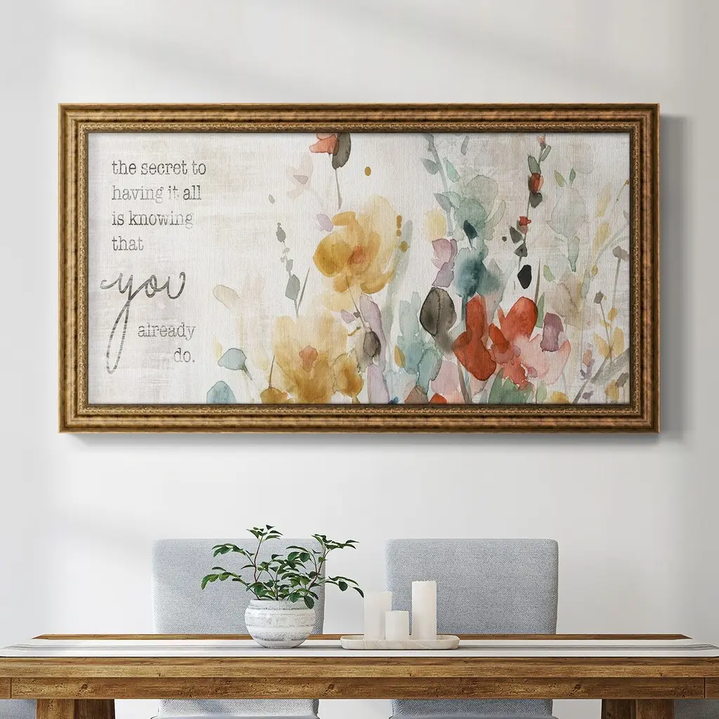 Full Bloom Verse Premium Framed Canvas- Ready To Hang - 18x34 - Bronze