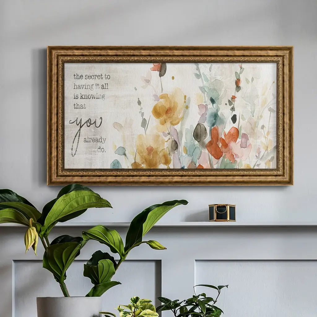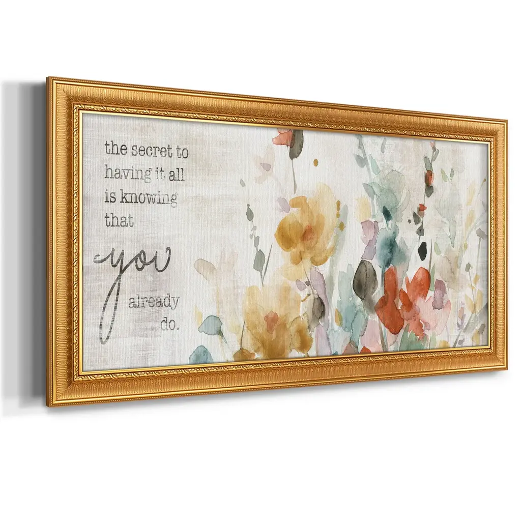Full Bloom Verse Premium Framed Canvas- Ready to Hang A Premium Framed Canvas created to last. Framed in distressed wood and available in an array of sizes and colors Featuring a beveled a solid wood stretcher bar, each piece comes ready to hand 3 SIZES AVAILABLE 21''X37'' - Overall Size 25''X45'' - Overall Size 29''x53'' - Overall Size Each piece is made to order. Each piece comes with hanging hardware. Made in the USA Ready to Hang Giclee Paper Print Acrylic Glass Beveled Matt Board