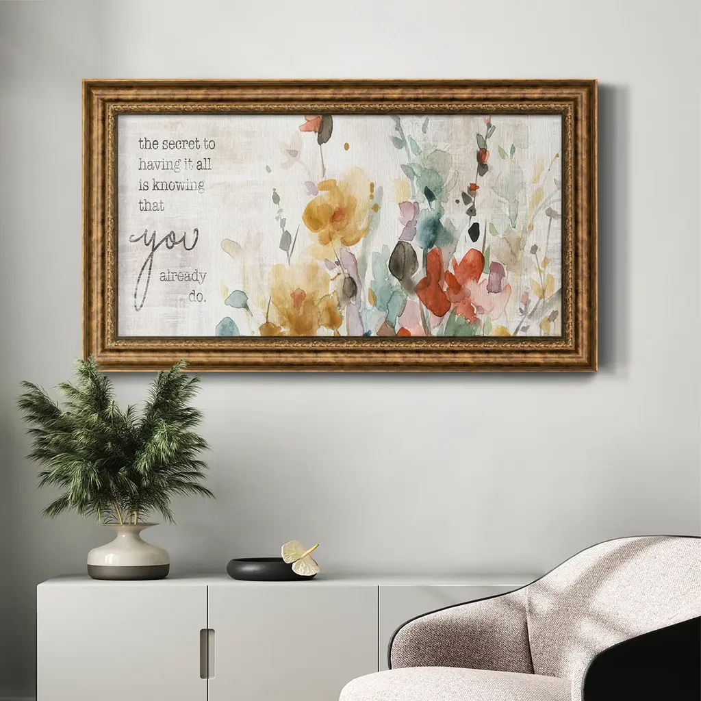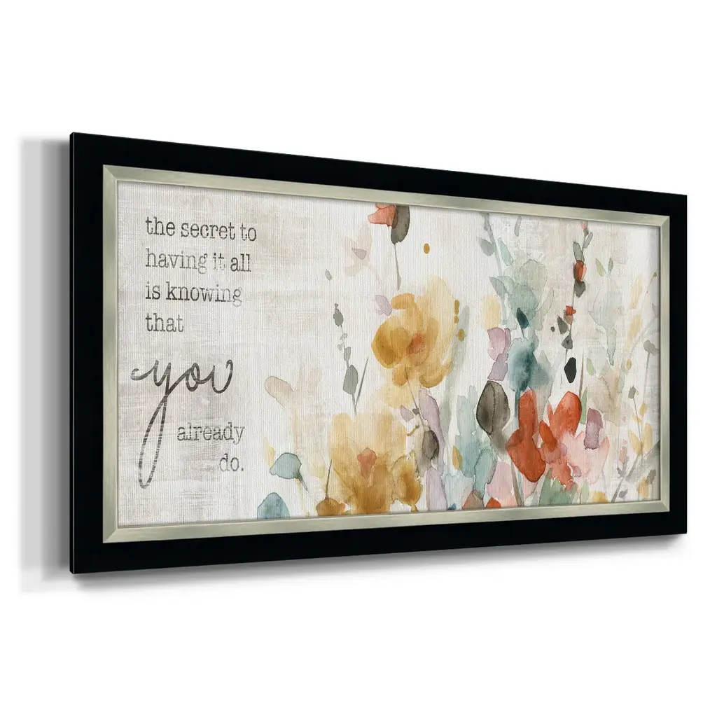 Full Bloom Verse Premium Framed Canvas- Ready To Hang - 18x34 - Charcoal