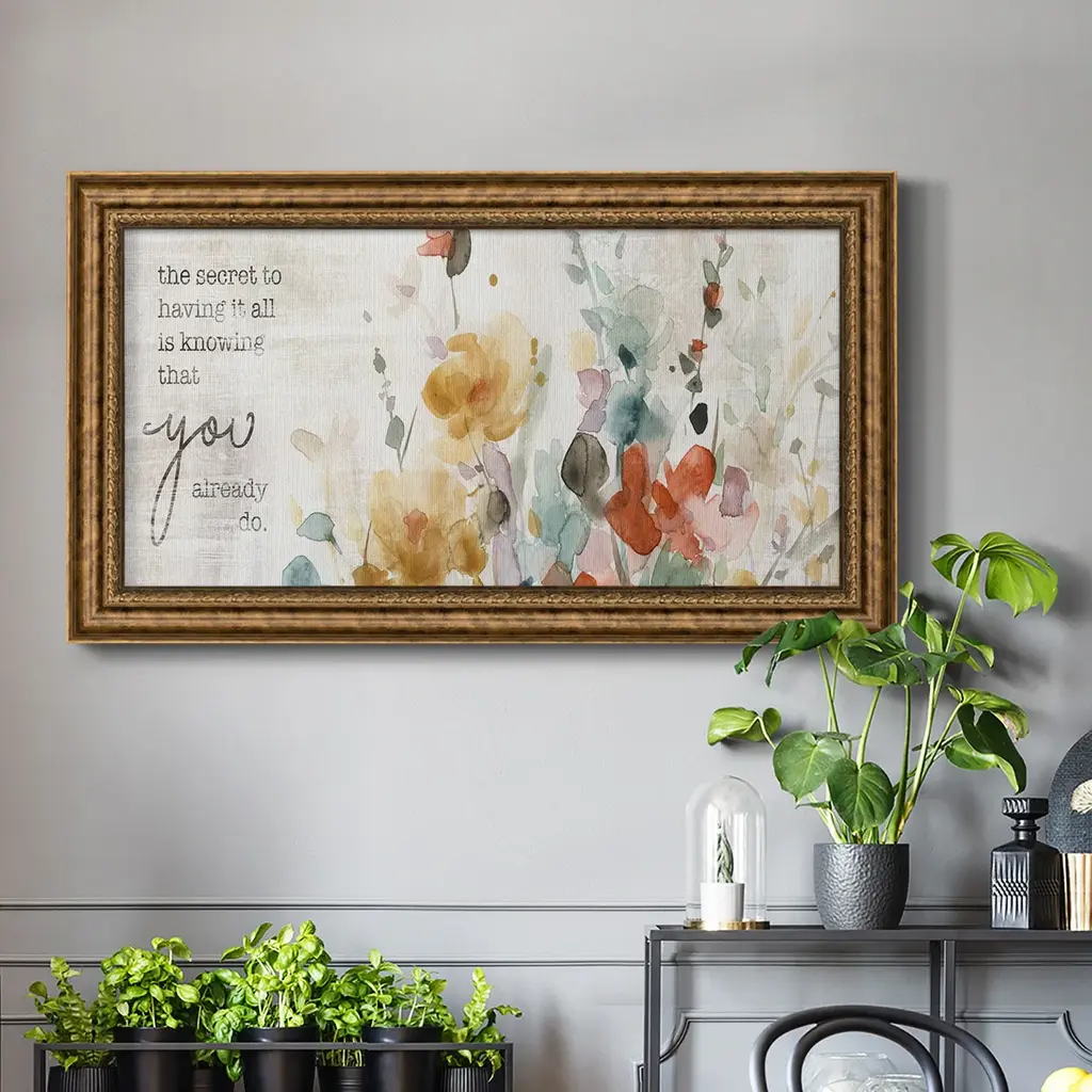 Full Bloom Verse Premium Framed Canvas- Ready To Hang - 18x34 - Gold