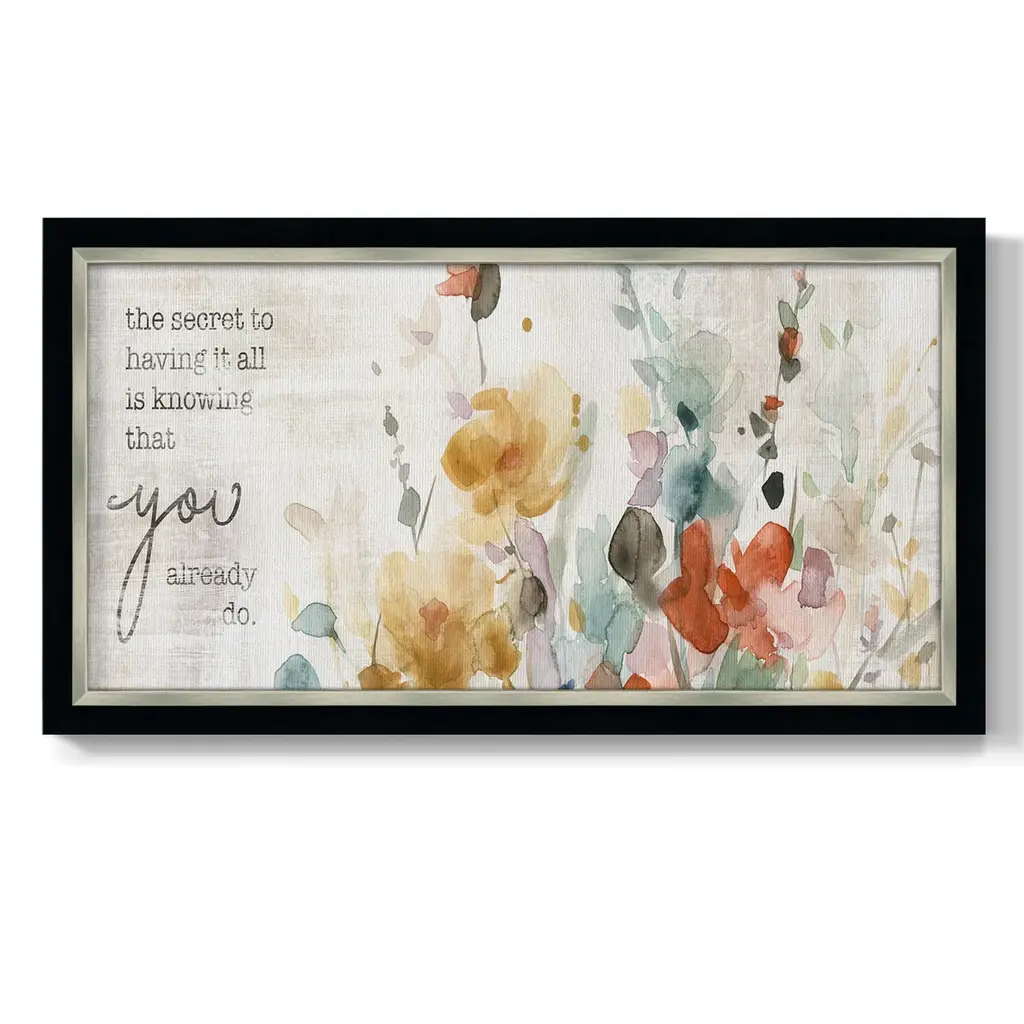 Full Bloom Verse Premium Framed Canvas- Ready to Hang A Premium Framed Canvas created to last. Framed in distressed wood and available in an array of sizes and colors Featuring a beveled a solid wood stretcher bar, each piece comes ready to hand 3 SIZES AVAILABLE 21''X37'' - Overall Size 25''X45'' - Overall Size 29''x53'' - Overall Size Each piece is made to order. Each piece comes with hanging hardware. Made in the USA Ready to Hang Giclee Paper Print Acrylic Glass Beveled Matt Board