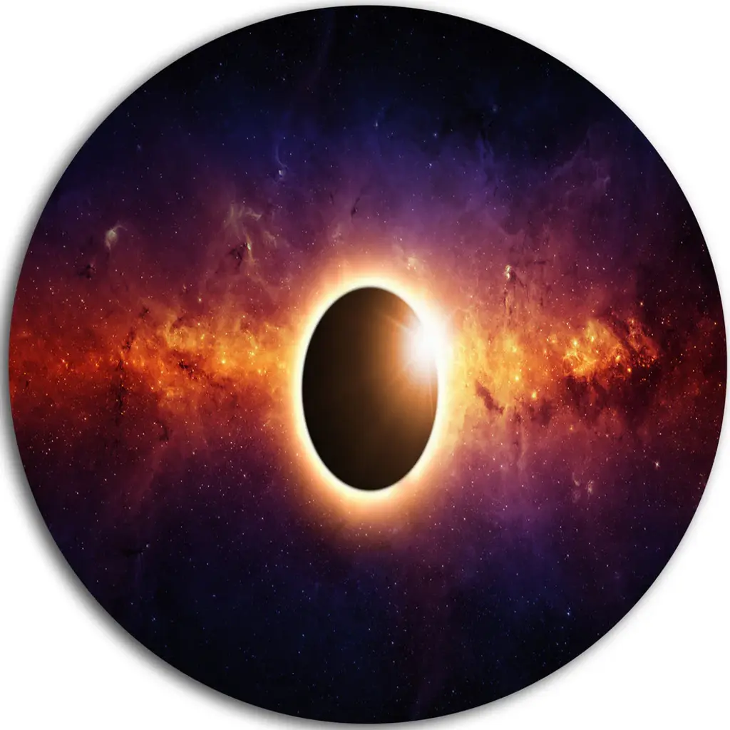 Bring contemporary abstraction to your home with this large 36W x 28H Metal Wall Art. This Full Eclipse View Metal Artwork makes it the focal point of any room or office. - White gloss coating ensures colors are extra vibrant with light reflection.- Aluminum grade sheet metal with 1-inch mounting frame on the back giving the illusion that the artwork is floating on the wall.- Mounting brackets are included along with instructions.- High quality digital images are created directly into a glossy aluminum panel producing a stunning and captivating print into the glossy finish of the metal.- Water, fire and scratch resistant HD aluminum panels.- Looks better than any photo paper and guaranteed to last at least 20 years- Easy to clean with a microfiber cloth. Colors are far superior to regular canvas art. - Easy to hang