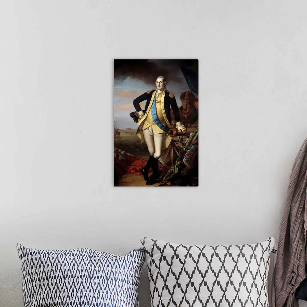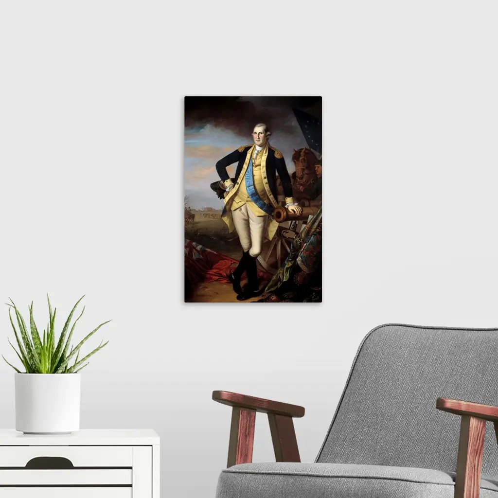 Full-length portrait of George Washington (1732-1799 ) after the Princeton Battle, 1777. Painting by Charles Peale (1741-1827) 1779. 2,35 x 1,55 m. Castle Museum, Versailles, France