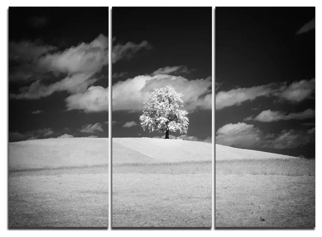 "Full Moon Autumn Midnight In Black" Photo Metal Wall Art, 3 Panels, 36"x28"