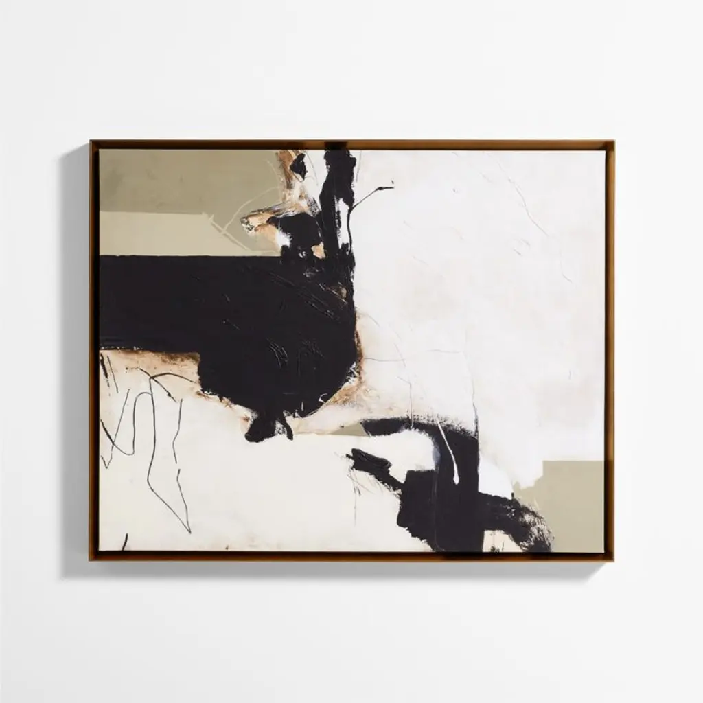 Bold, abstract and dynamic, this print brings gallery-like expression to your walls. A giclee print of Joe Turner's original acrylic painting, the composition's vivid brushwork, gestural drips and neutral palette look fresh from the easel thanks to textural hand-applied embellishment. Each print is presented under clear acrylic in a wood frame.