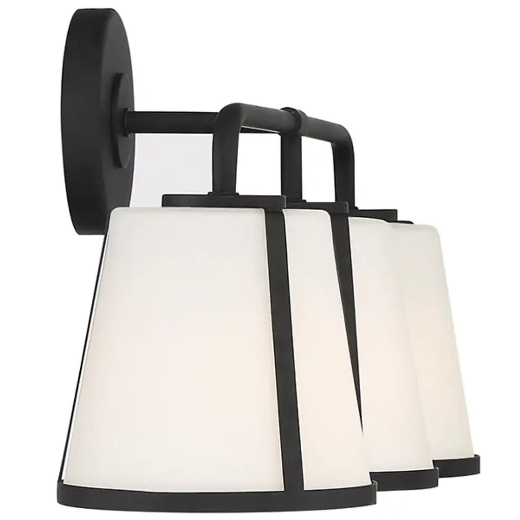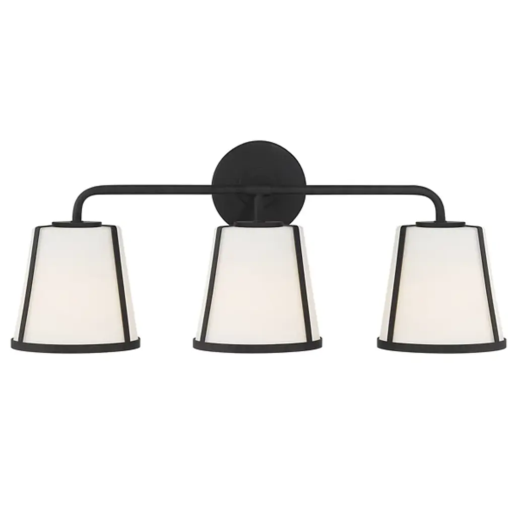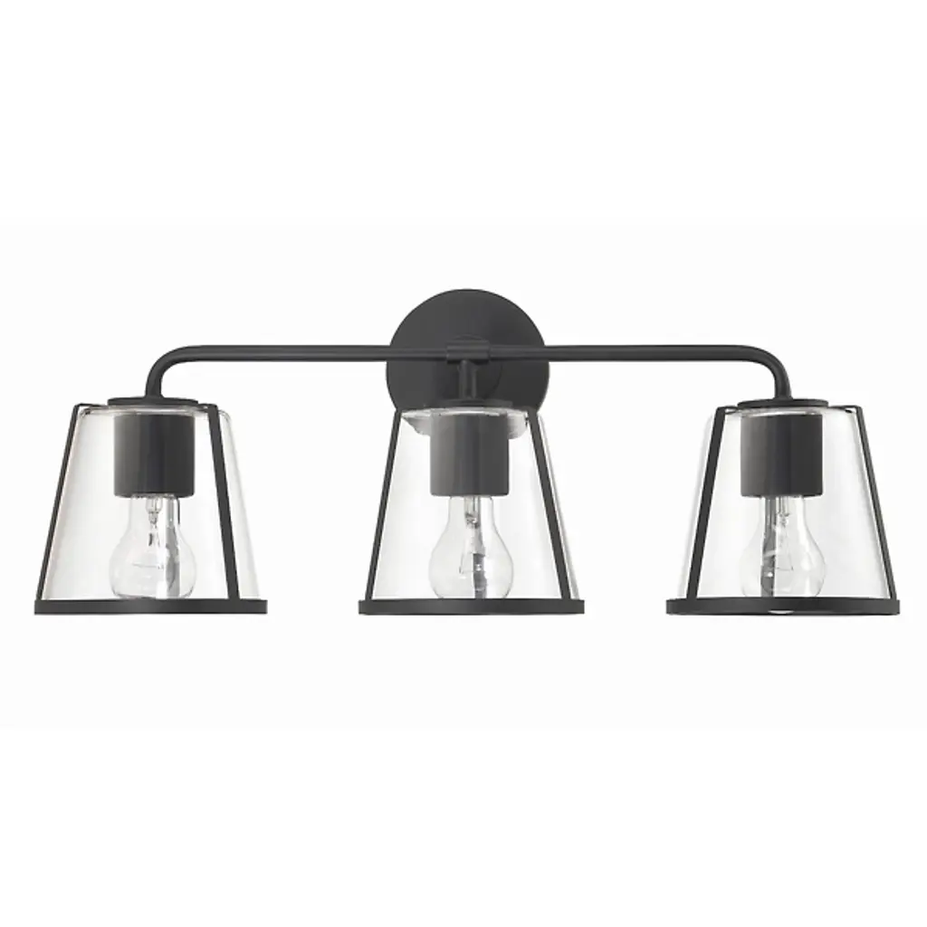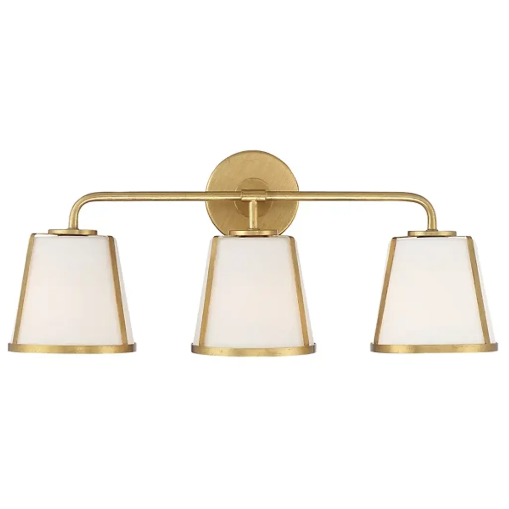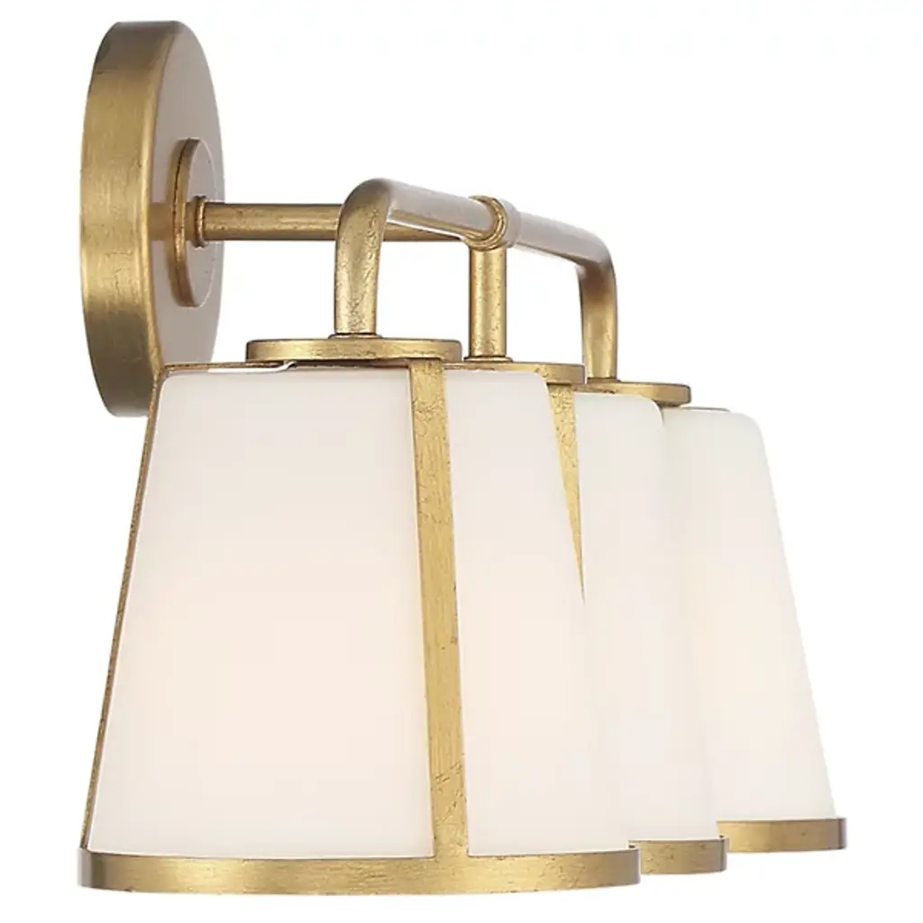The tailored and versatile Fulton Vanity Light from Crystorama charms contrasting materials that create a bold display. This fixture features tapered glass shades that cast illumination downwards. The outpouring light provides a warm and cozy feeling. The smooth glass is wrapped in a metal ring with tailored lines that create an elegant contrast.