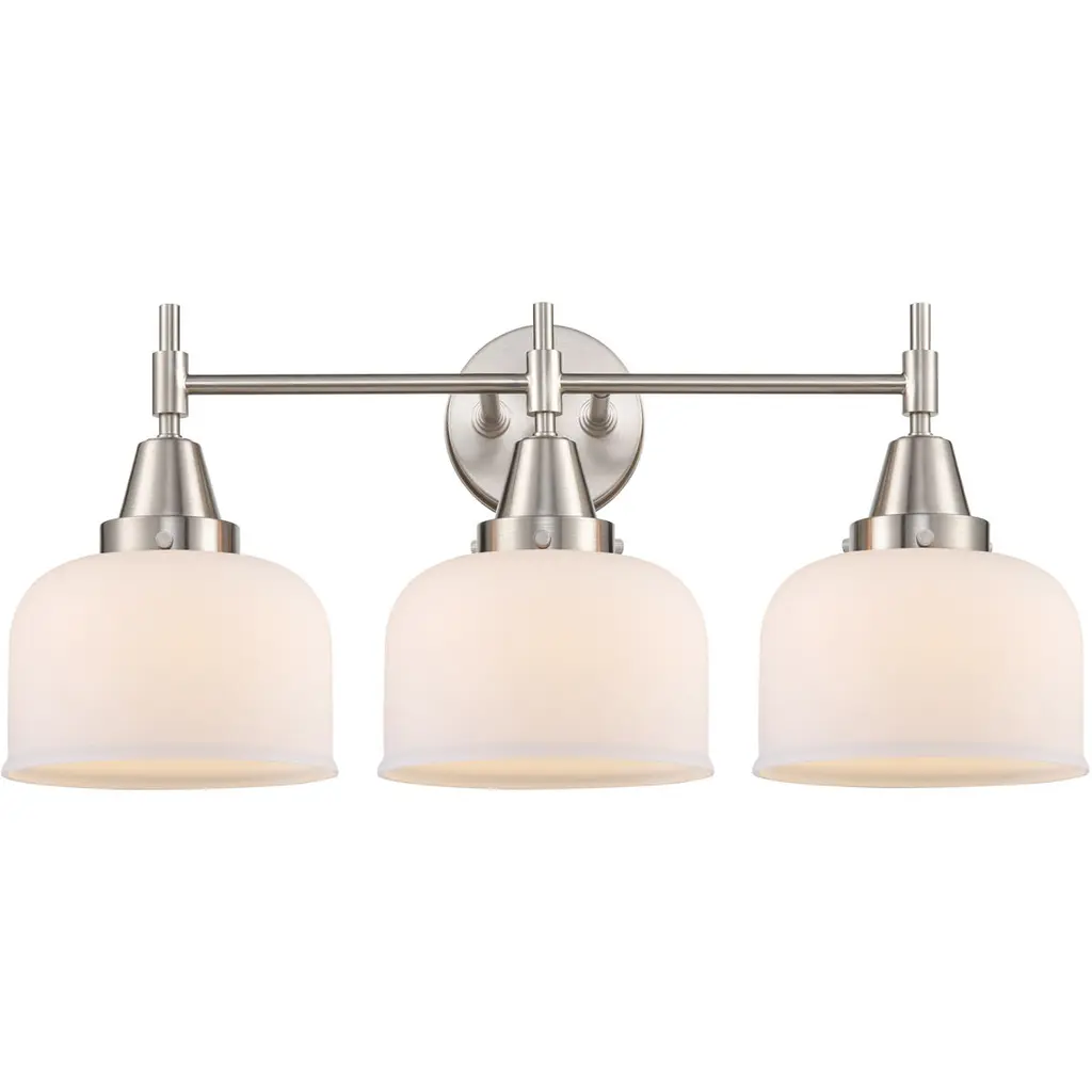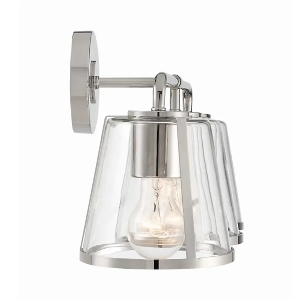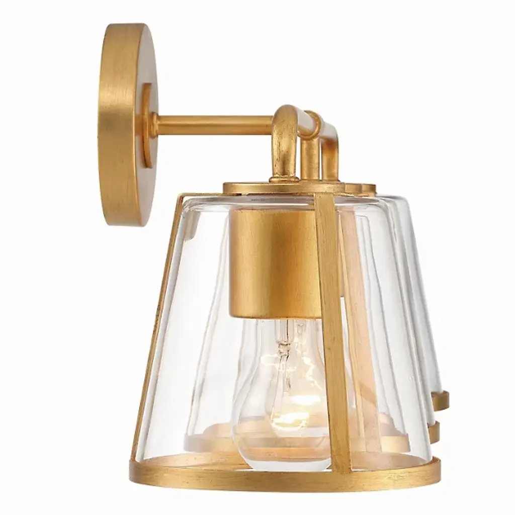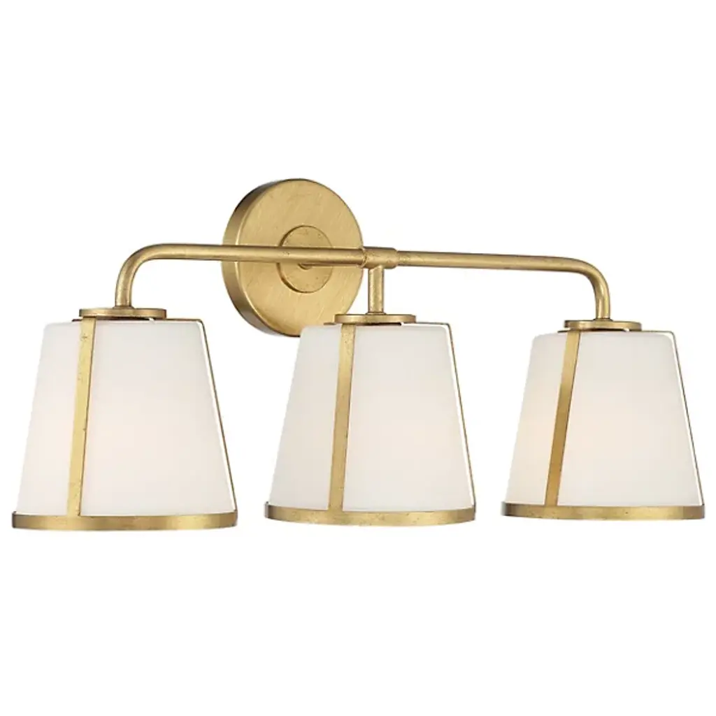The tailored and versatile Fulton Vanity Light from Crystorama charms contrasting materials that create a bold display. This fixture features tapered glass shades that cast illumination downwards. The outpouring light provides a warm and cozy feeling. The smooth glass is wrapped in a metal ring with tailored lines that create an elegant contrast.