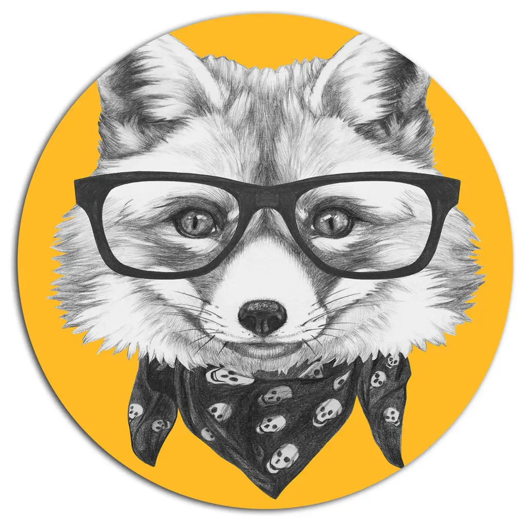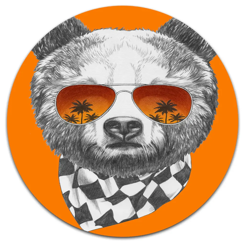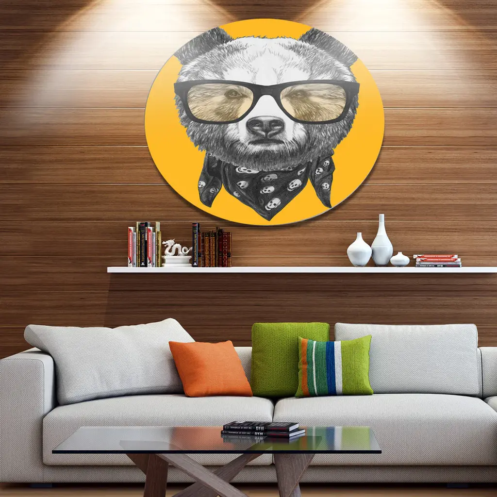Bring Contemporary Abstraction to your home with this large Circle Metal wall art. This Funny Bear with Formal Glasses Metal Artwork makes it the focal point of any room or office. - White Gloss Coating ensures colors are extra vibrant with light reflection.- Aluminum grade Sheet Metal with 1 inch mounting frame on the back giving the illusion that the artwork is floating on the wall..- Mounting Brackets are included along with instructions.- High Quality Digital images are created directly into a glossy aluminum panel producing a stunning and captivating print into the glossy finish of the metal.- Water, Fire and Scratch resistant HD Aluminum panels.- Looks better than any photo paper and guaranteed to last at least 20 years- Easy to clean with a microfiber cloth. Colors are far superior to regular Canvas Art. - Easy to Hang