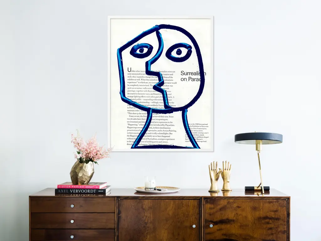 DESCRIPTION: Funny Face 1 by Virginia Chamlee in White Frame, Medium Art Print SPECIFICATIONS: Type: Framed Paper. Framed Size (in): 28x36. Orientation: Vertical. Flush/Float/Matted: Flush. Frame Color: White. Hanging Hardware: Picture Perfect. FRAMING: Each art work arrives framed and ready to hang. We use handmade frames with a plexiglass glazing front, because it offers less glare than standard glass. At this time, we only offer framed prints. ARTIST BIO: Virginia Chamlee had spent more than a decade collecting and selling vintage and contemporary works of art before she began selling her own. The bulk of her artwork is inspired by the colors and shapes found throughout her home state of Florida, and the power and beauty of the female form. A journalist for more than a decade, much of Virginia's art is inspired by the written word. She has been published in The Washington Post, Business Insider, Buzzfeed, Ms. Magazine, and Eater, among others.