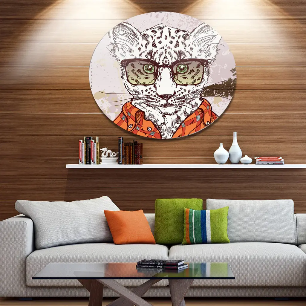 Funny Hipster Leopard With Glasses, Animal Round Metal Wall Art, 36"