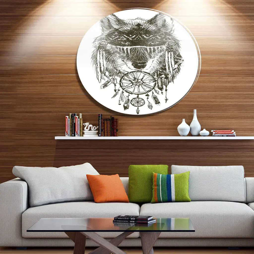 Bring Contemporary Abstraction to your home with this large Circle Metal wall art. This Funny indian Wolf Warrior Watercolor Metal Artwork makes it the focal point of any room or office. - White Gloss Coating ensures colors are extra vibrant with light reflection.- Aluminum grade Sheet Metal with 1 inch mounting frame on the back giving the illusion that the artwork is floating on the wall..- Mounting Brackets are included along with instructions.- High Quality Digital images are created directly into a glossy aluminum panel producing a stunning and captivating print into the glossy finish of the metal.- Water, Fire and Scratch resistant HD Aluminum panels.- Looks better than any photo paper and guaranteed to last at least 20 years- Easy to clean with a microfiber cloth. Colors are far superior to regular Canvas Art. - Easy to Hang